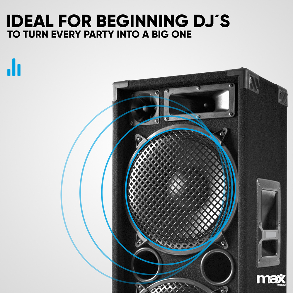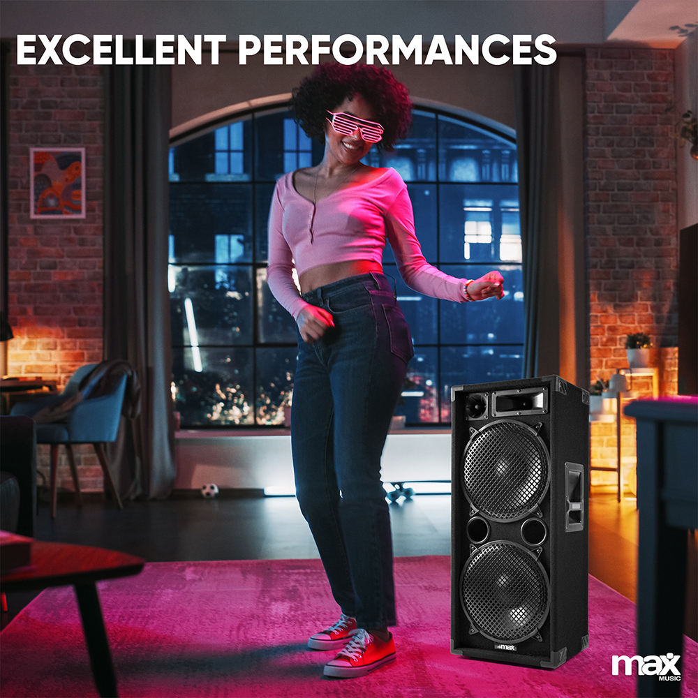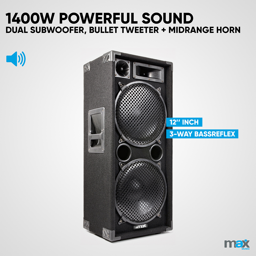 Max SP212 PA Speaker System 1400W Dual 12" Woofers for DJ Disco Parties