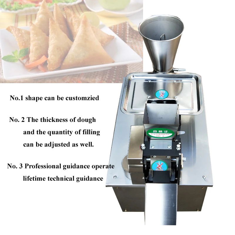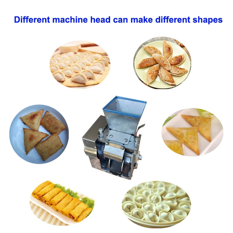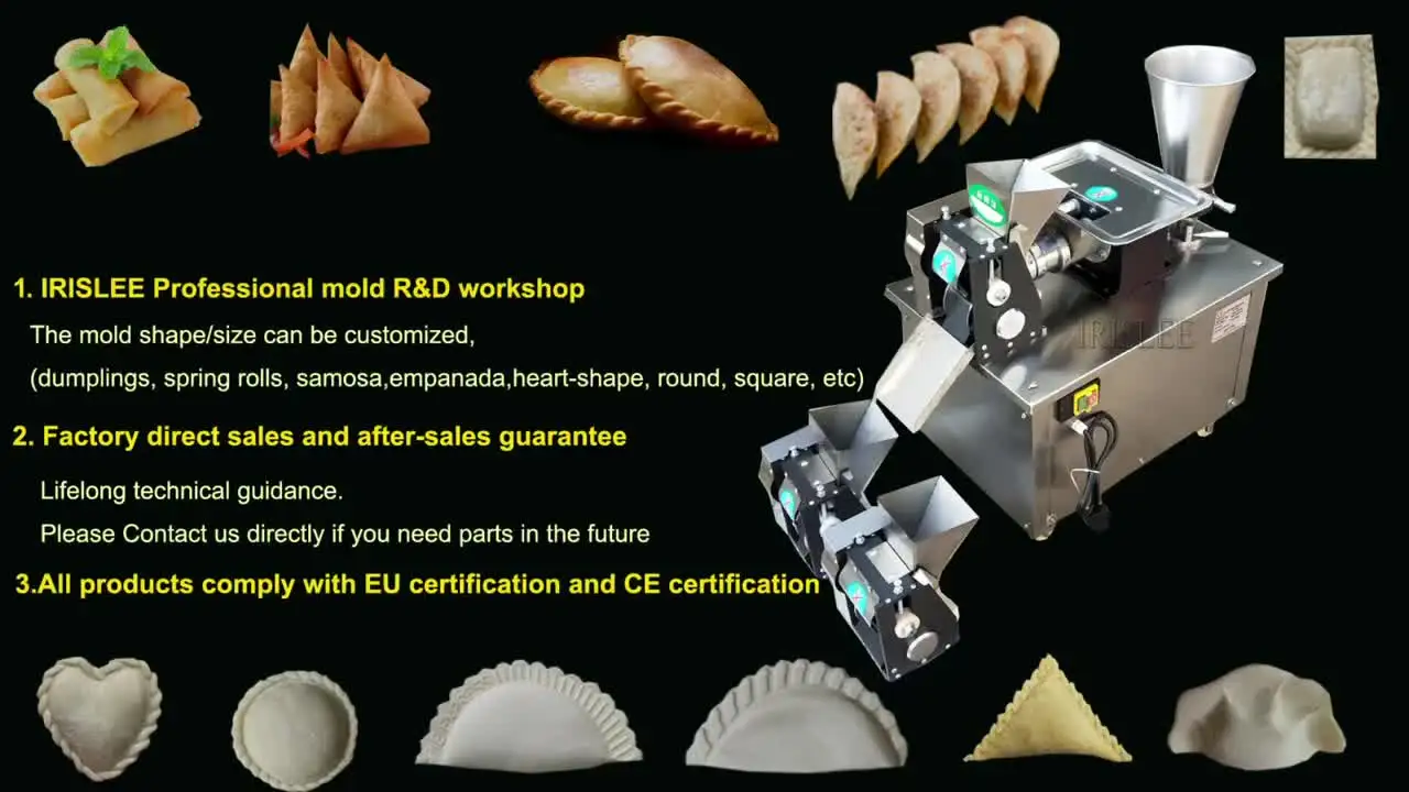 2.Unique design, multi-usage :By replacing different molds, the machine can make dumplings, fried dumplings, spring rolls, wontons, samosa, steamed dumplings etc.