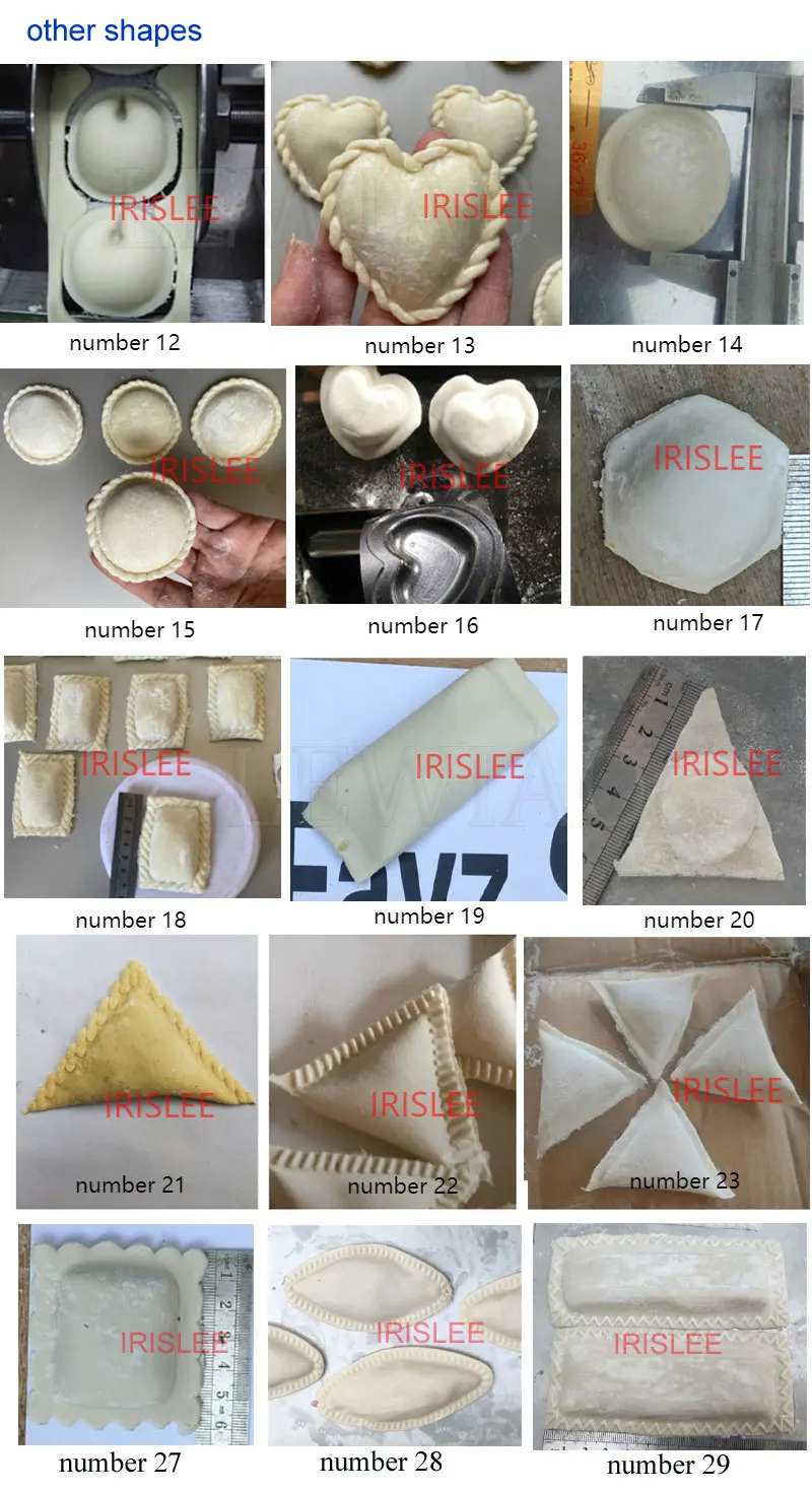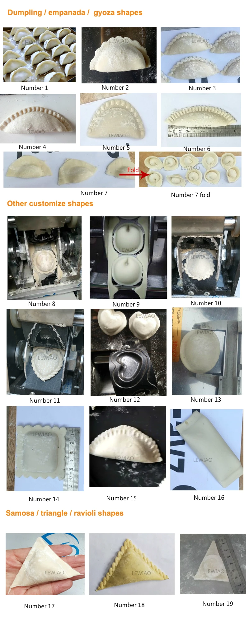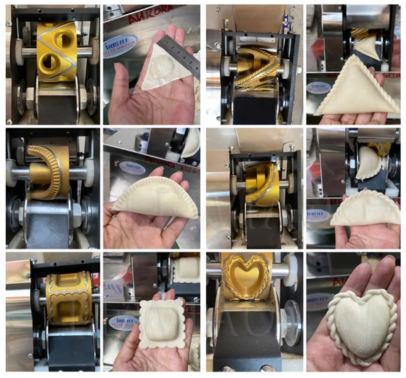 8.Only need to change mold (machine head), can produce different shape, different specifications of the pastry food.Such as: ordinary dumplings, dumplings, lace square dumplings, Fried dumpling, spring rolls, samosa, ravioli , etc.