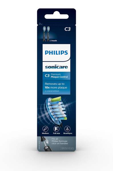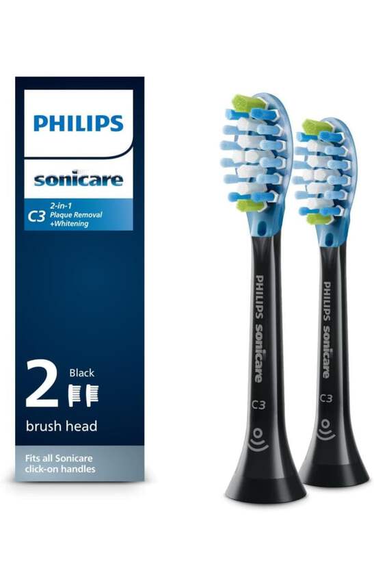Philips Sonicare Genuine C3 Premium Plaque Control Replacement Toothbrush Heads, 2 Brush Heads (Black) HX9042/95