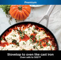 OVEN SAFE: Easily go from stovetop to oven to finish cooking meats, brown toppings, or bake like you can in cast iron. Lids, handles and nonstick coating are all oven safe up to 500°F.