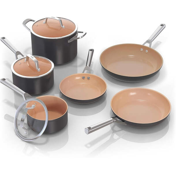 • CERAMICLOCK COATING: Dual-bonded coating preserves the nonstick performance for years while traditional a ceramic nonstick cookware set can wear out quickly.