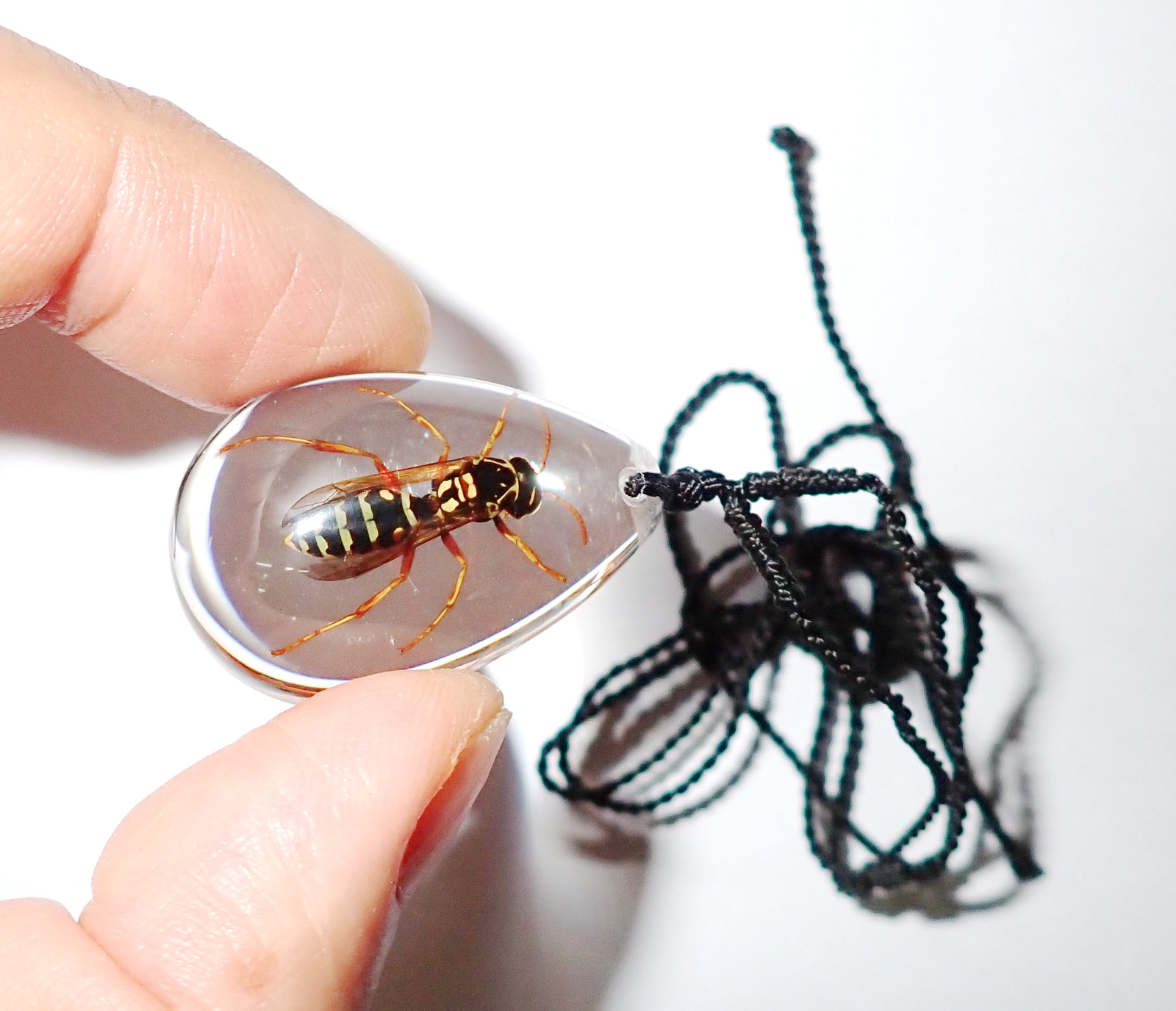 Real Red Wasp (Vespula rufa) specimen encased in indestructible, transparent acrylic necklace. Safe, authentic and completely unbreakable product put real Wasp right at your fingertips!