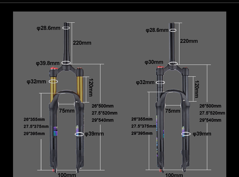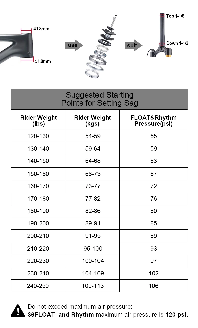 Steerer Diameter: 1.1/8" - 1.1/2" Tapered 39.8mm; 1.1/8" Straight 30mm