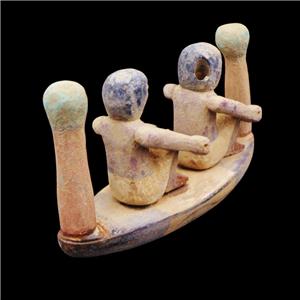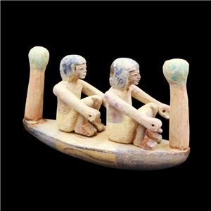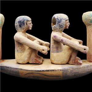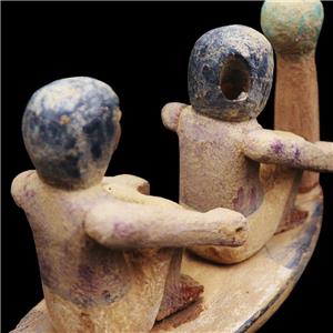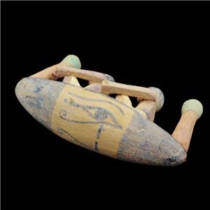 Up for auction: A RARE and LARGE Antique Wooden Art Sun Boat, inspired by the Ancient Egyptian Museum Ship Collection. This stunning handcrafted piece showcases remarkable detail and craftsmanship, capturing the essence of the legendary solar boats used in pharaonic rituals and mythology. A true conversation starter and collector's treasure. ONE OF A KIND – an exceptional find for lovers of ancient history and Egyptian culture.