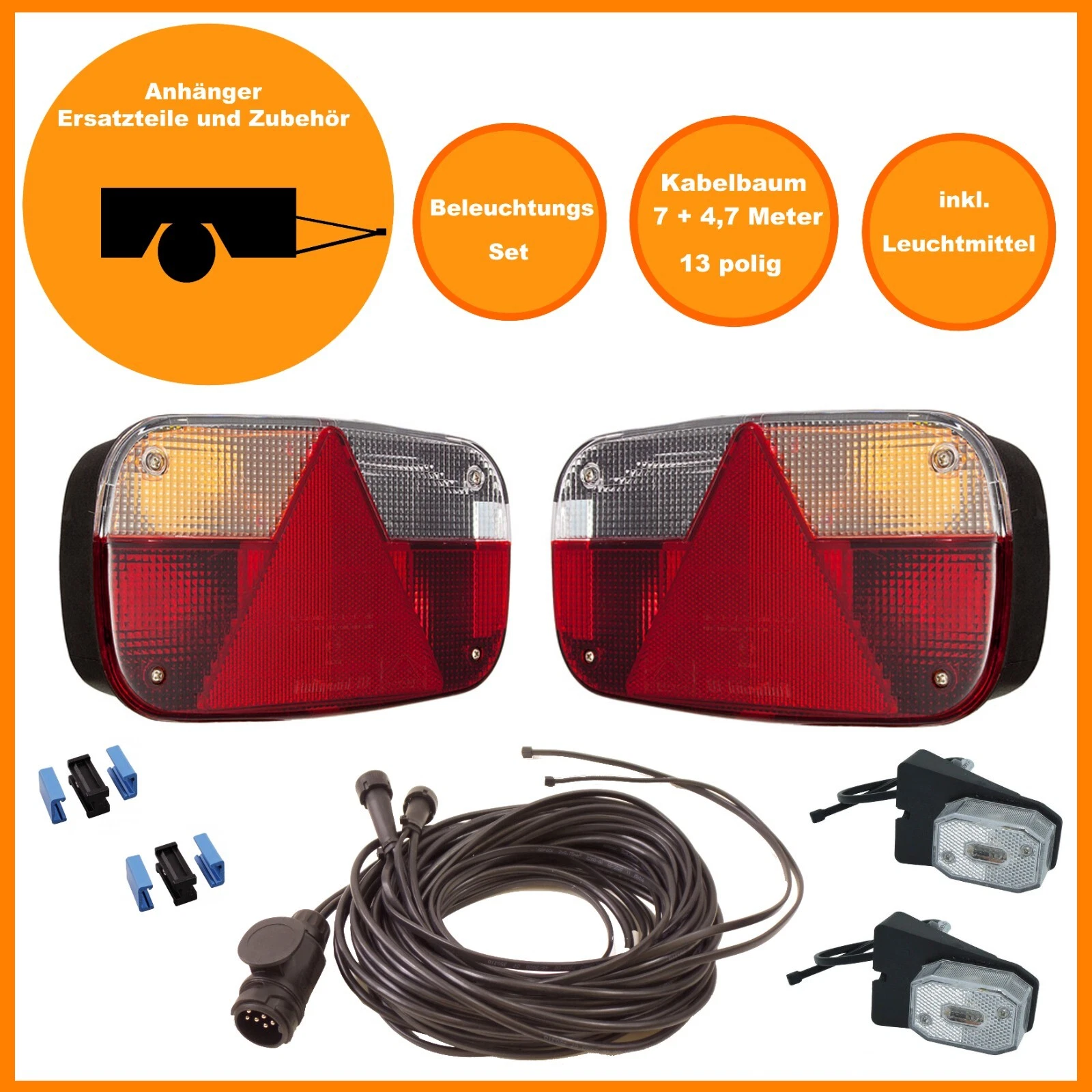 2x Rückleuchte rechts + links + Kabelbaum 13 pol. - 7 + 4,7 Meter
