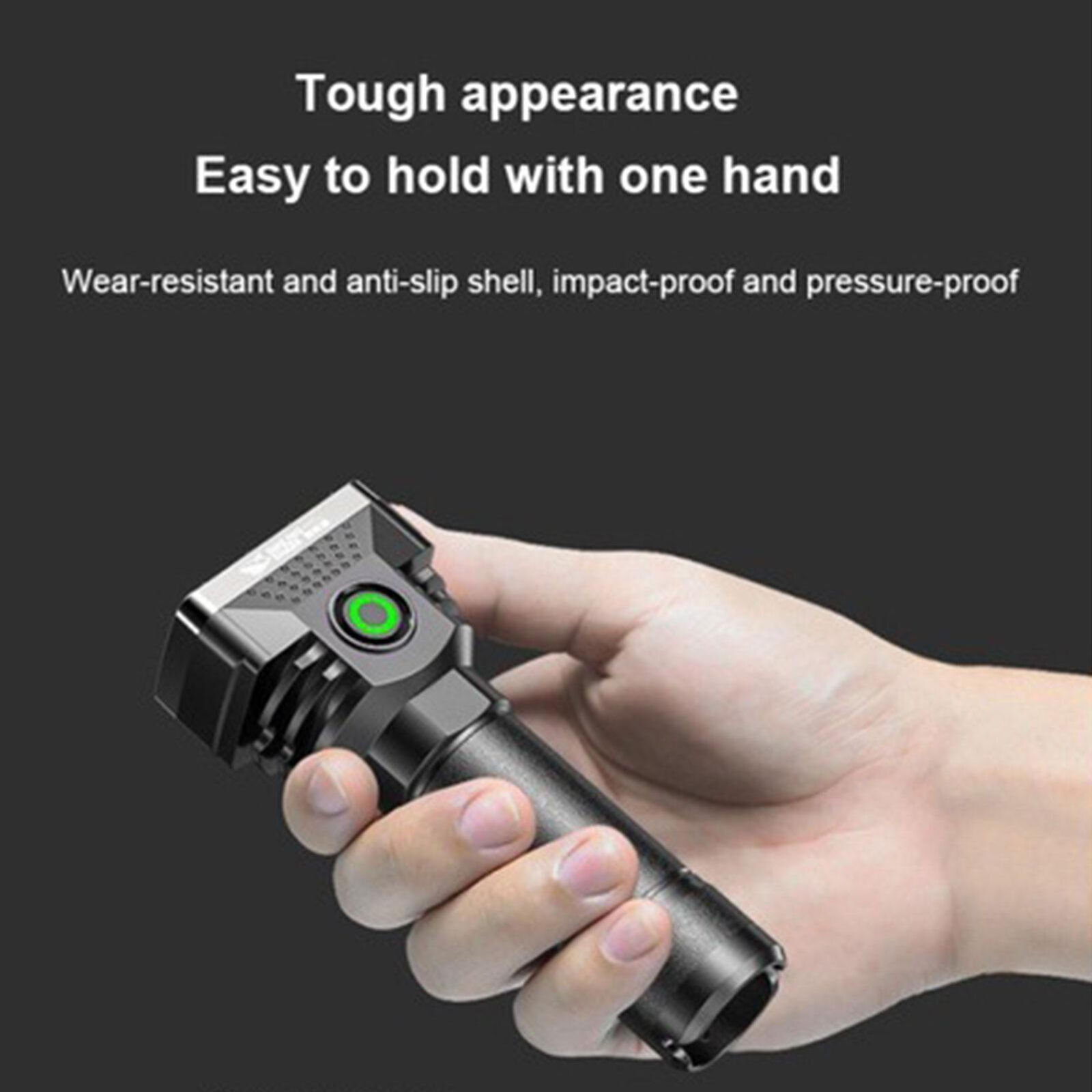 The LED flashlight has a 1500mAh lithium-ion battery, and USB charging is more convenient and more environmentally friendly. Power display, easy to know the battery power at any time.