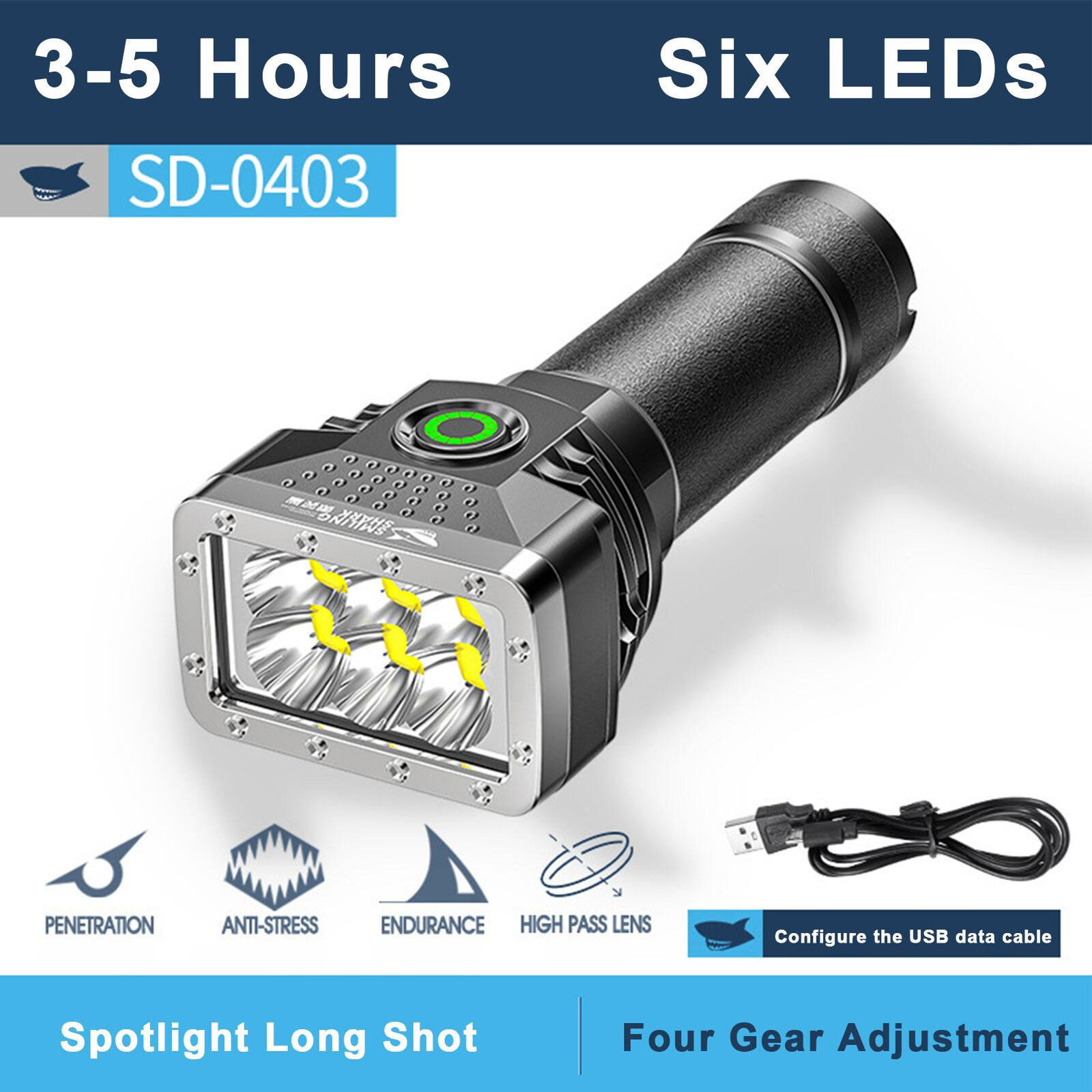 The flashlight has 6 LED beads for higher brightness. The wider the area of the irradiated light source, the farther the irradiated light source is.