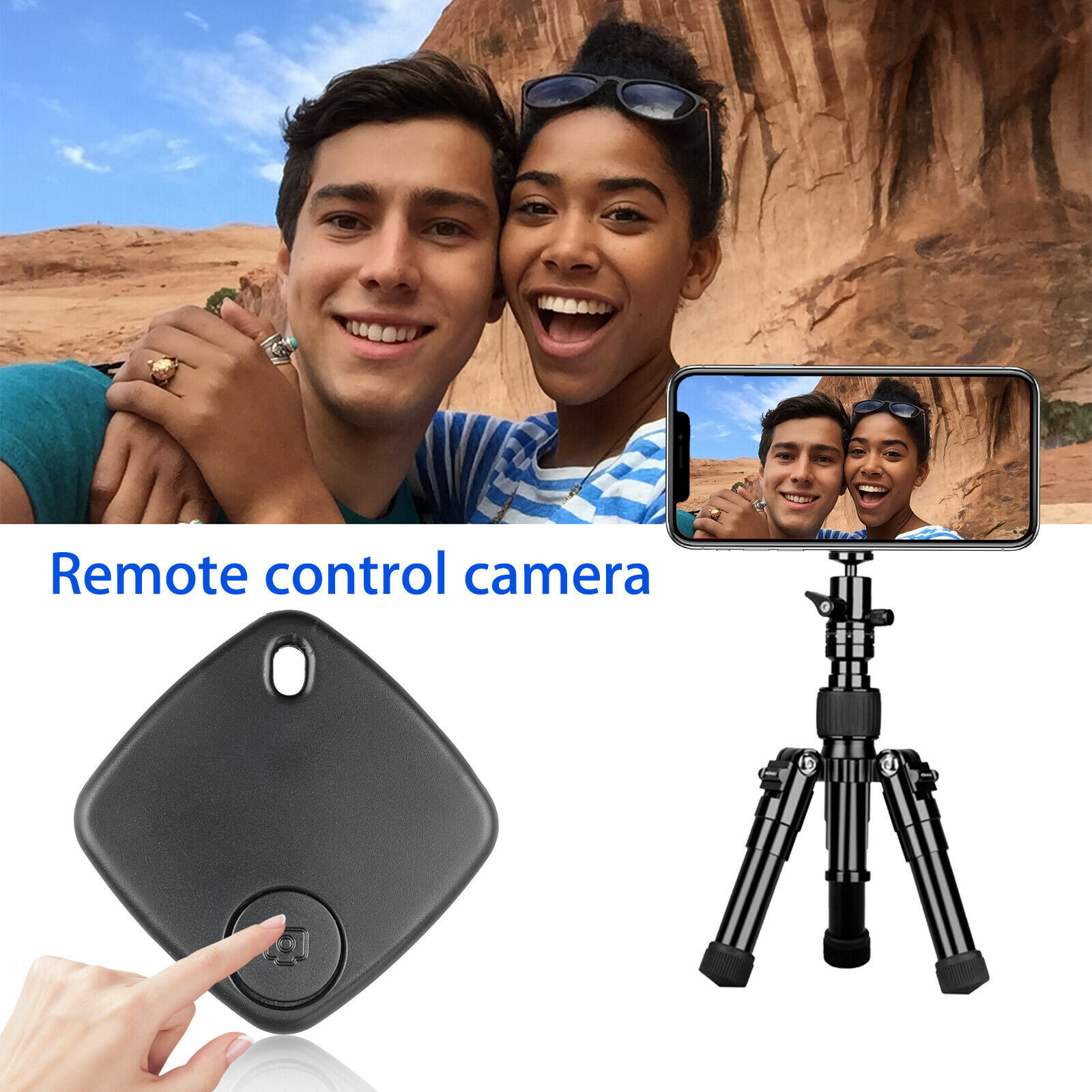 Capture selfies or group pictures by the help of this small keyring finder, no more timer, just tap the camera button when you're ready to pose.