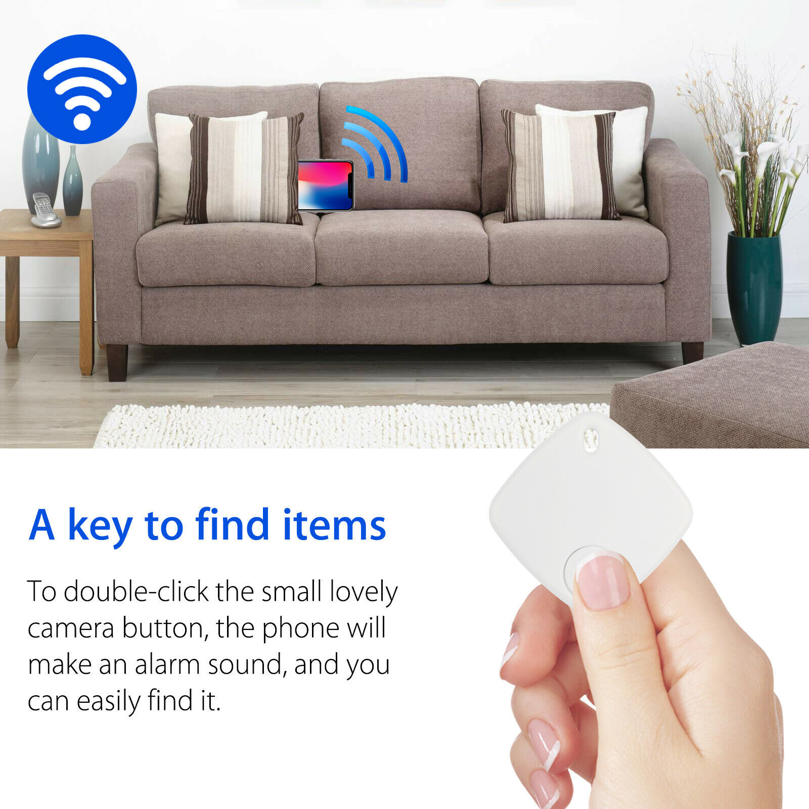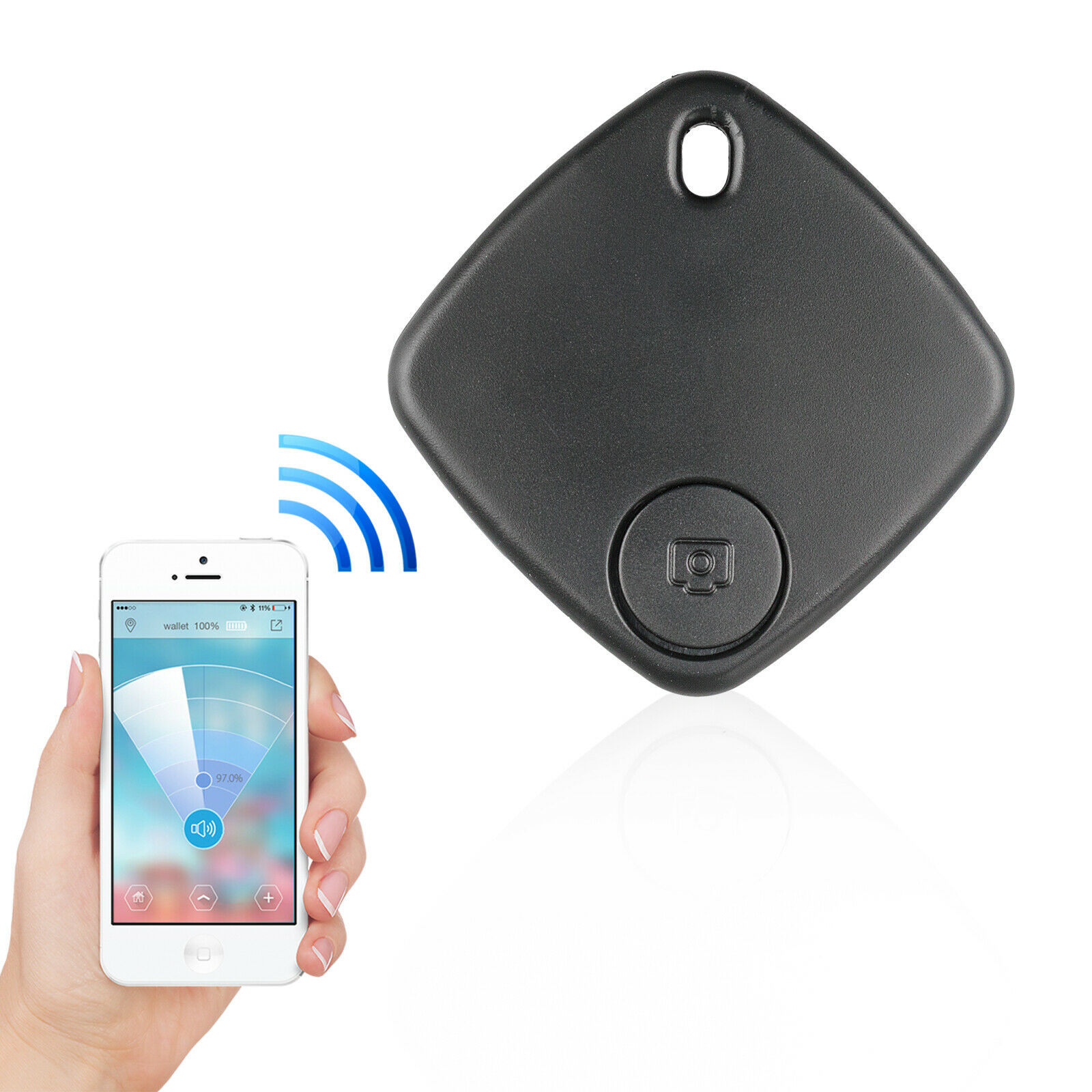 Modern design key and phone tracker comes with the hanging tag for your convenience. Easy to use, don't worry too much about losing items!
