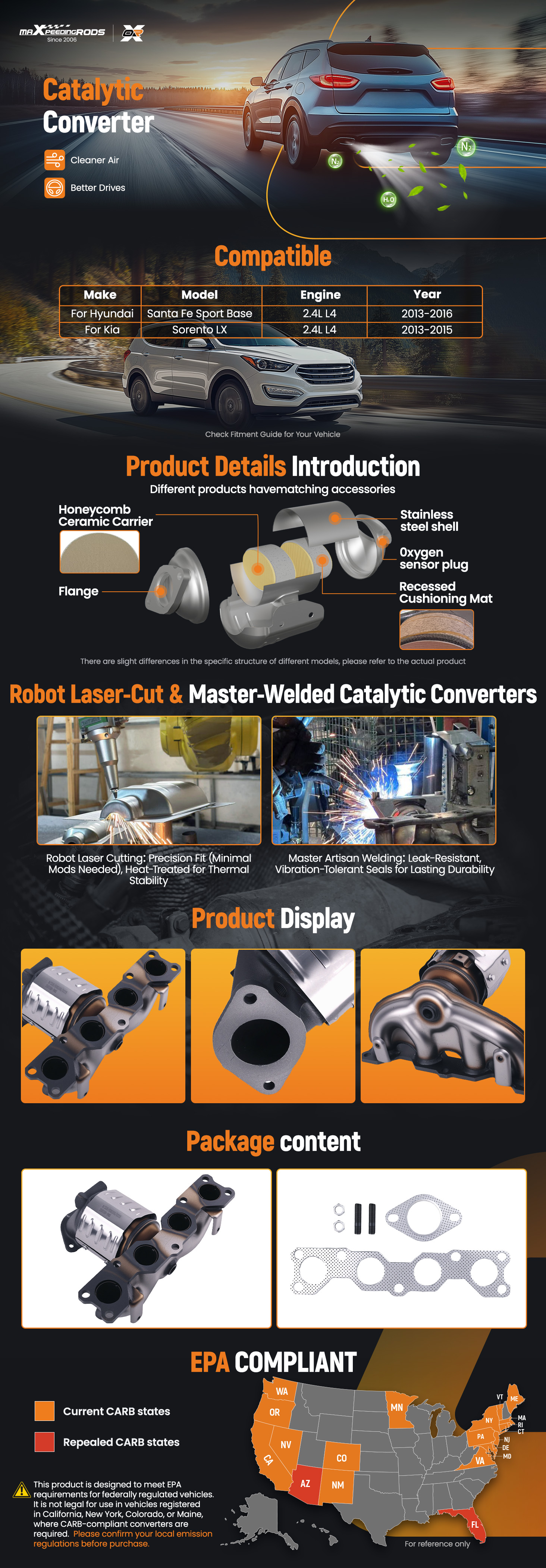 Direct Fit Exhaust Manifold Catalytic Converter for Santa Fe Sport 2.4L 2013-16