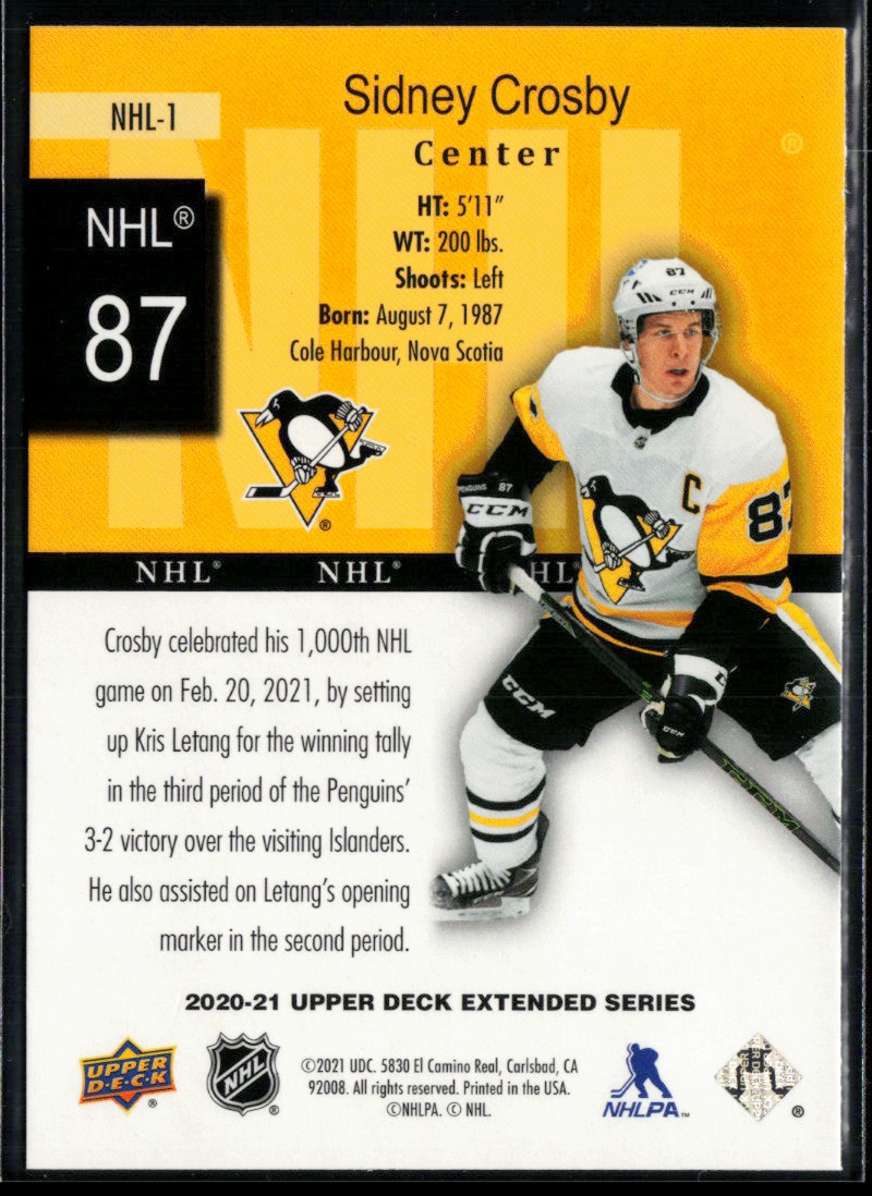 | 2020-21 Upper Deck HoloGrFx NHL #NHL-1 Sidney Crosby |