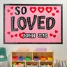 Enhance the look of a Sunday School classroom with this classroom decoration that will remind kids of God’s love. This mini bulletin board set features heart images, the words, So Loved, and a reference to the Bible verse John 3:16. As kids look closer at the bulletin board, they will see the John 3:16 Bible verse cleverly written out on the word, loved.