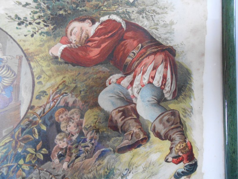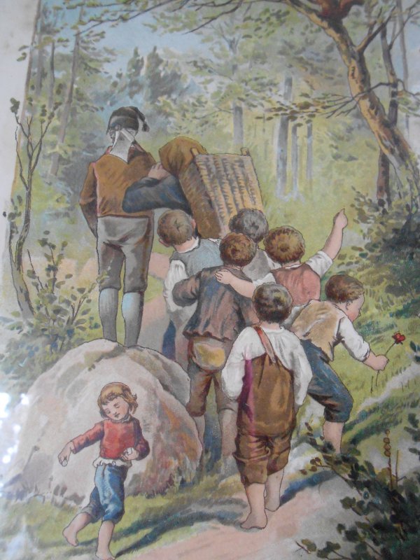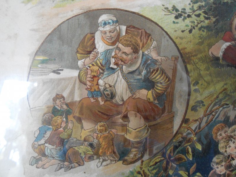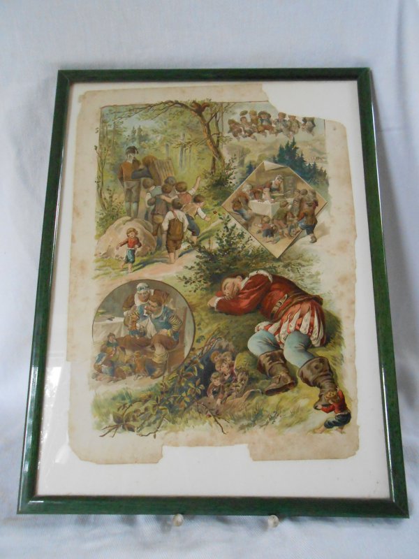dargestellt sind Szenen aus Grimms Märchen mit sieben kleinen Wichten