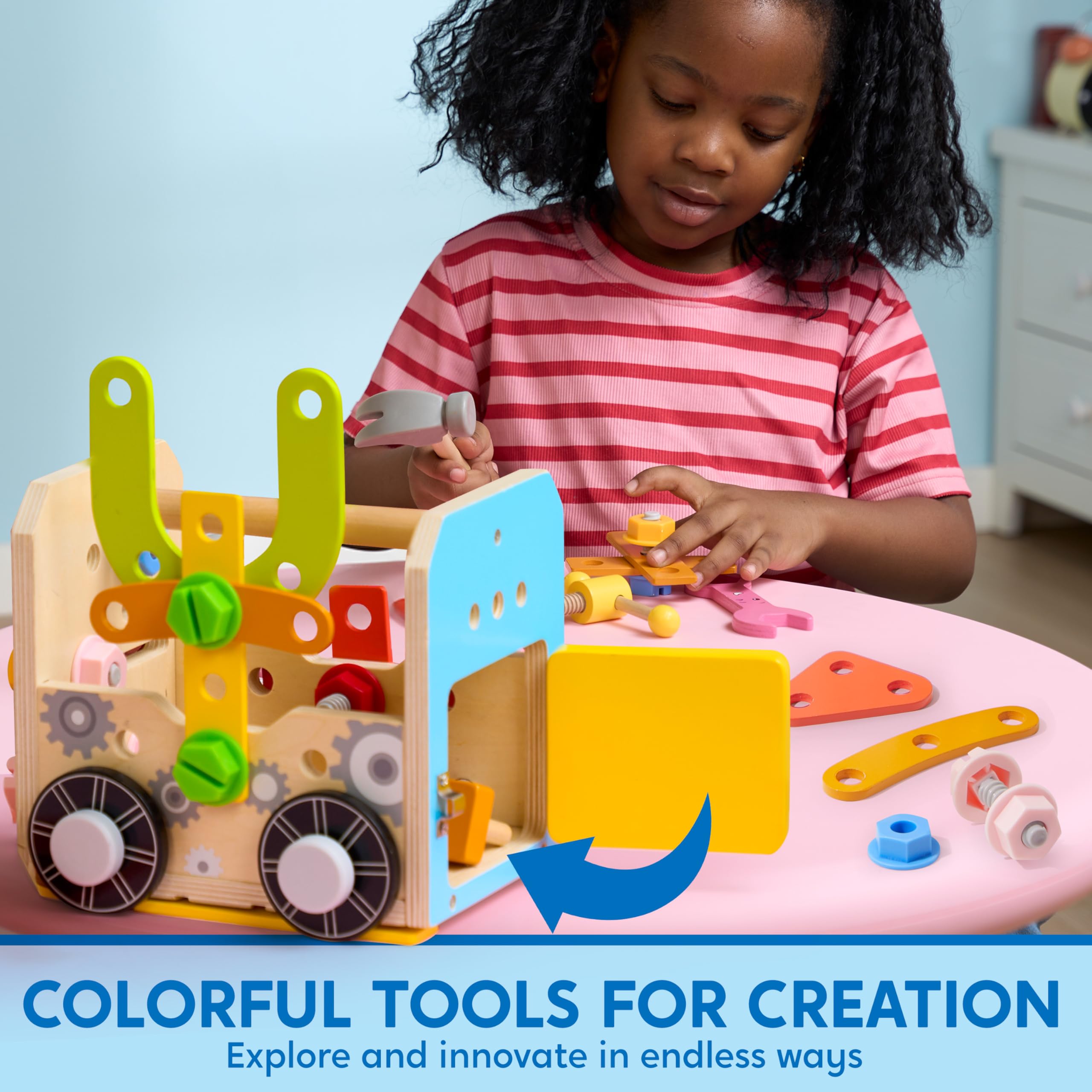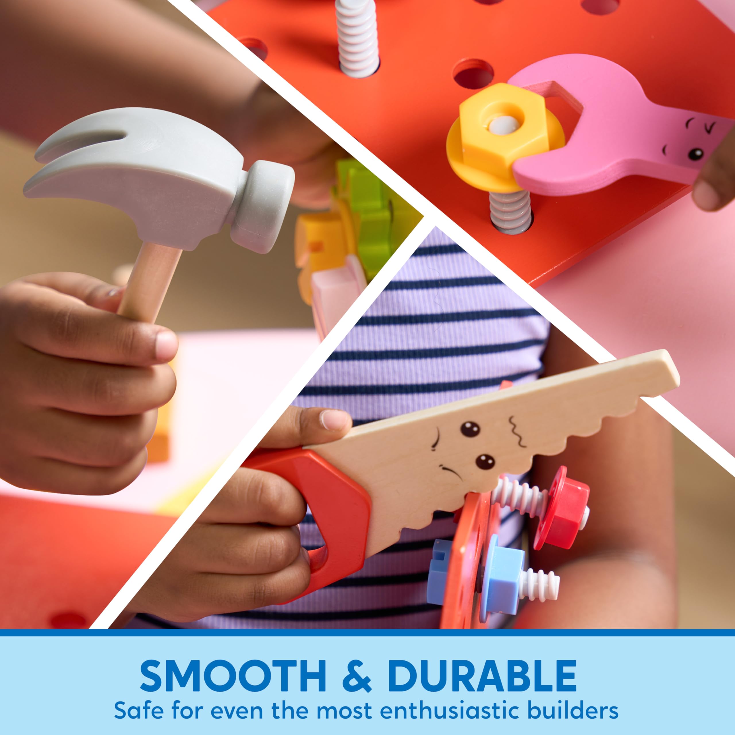🔧 51-piece set includes hammer, saw, screwdriver, wrench, gears, wheels, nuts & bolts, and wooden boards