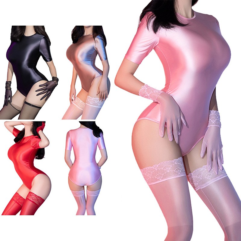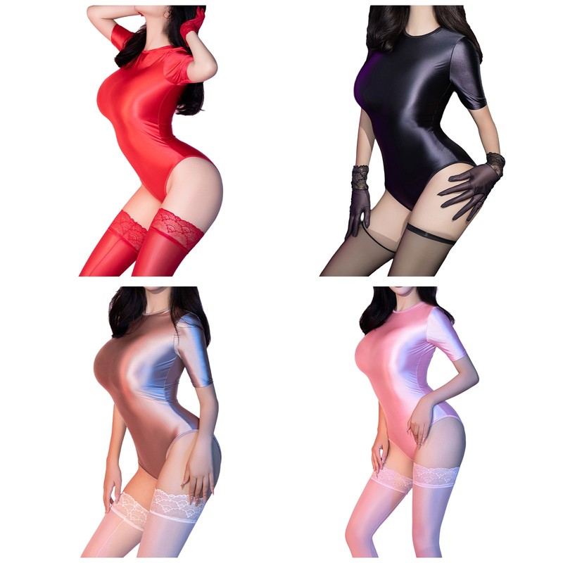 Women Catsuit Teddy Bodysuit Bodycon Lingerie High Cut Swimsuit Leotard Silky