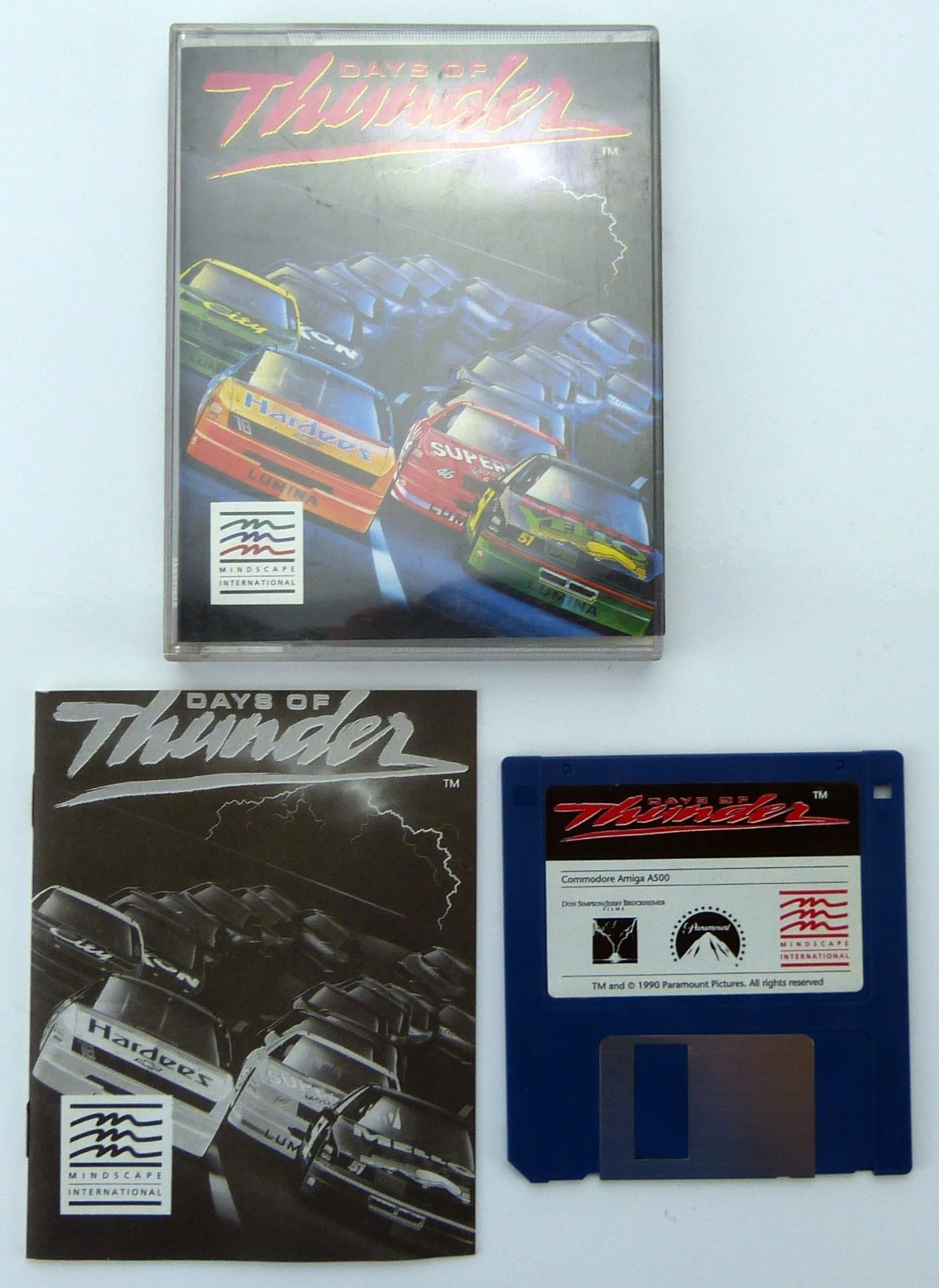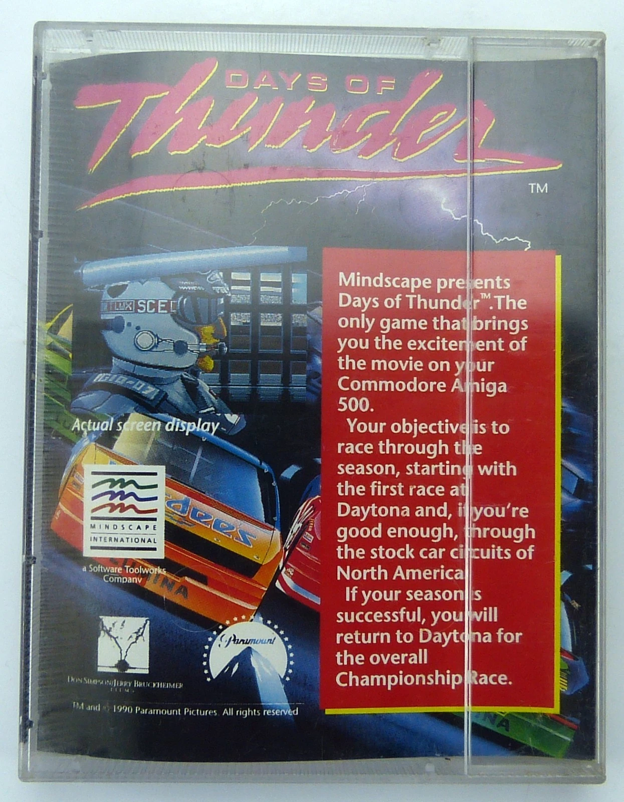 Mindscape presents Days of Thunder. The only game that brings you the excitement of the movie on your Commodore Amiga 500.