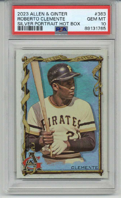 The item you are buying is a PSA GRADED and ENCAPSULATED 2023 Topps Allen & Ginter Silver Portrait Hot Box #363 card of Roberto Clemente. The card was graded a 10 by PSA. This card comes from my personal collection. The plastic of the encapsulation has no cracks and is scratch free.