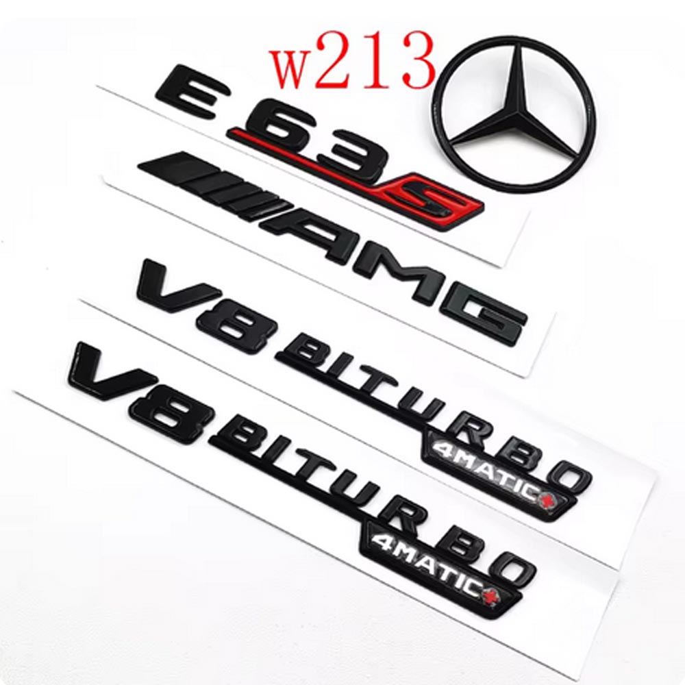 Produktverpackung: 5-teilige (E63S 1PC, AMG 1PC, W213/W212 Rear Star 1PC, V8 Biturbo 4Matic+2 Stücke).
