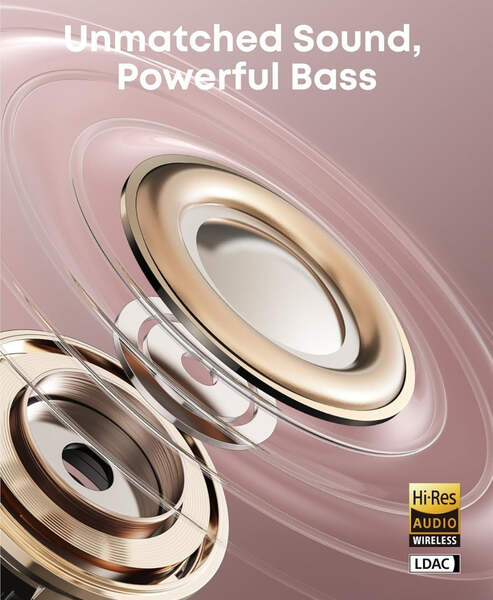 • Hi-Res Audio, Rich Bass: Enjoy Hi-Res sound and rich bass with in-ear-level quality. Our advanced virtual bass technology enriches the lows, complemented by a 12mm titanium-coated driver for clear listening. Note: Update the soundcore app to the latest version for the best listening experience.