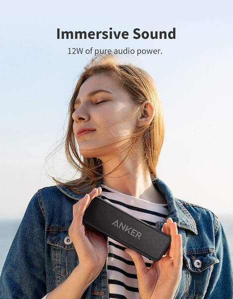 Brand Anker Speaker Maximum Output Power 12 Watts Frequency Response 70 Hz Connectivity Technology AUX-IN Audio Output Mode Stereo Input Voltage 5 Volts Incredible Sound Loved by 20 Million+ People Bluetooth Speaker with Intense Bass: Exclusive BassUp technology and a patented spiral bass port boost low-end frequencies to make the beats hit even harder. Outdoor-Proof: IPX7 protection safeguards the Bluetooth speaker against rain, dust, snow, and spills. Get incredible sound at home, in the yard, or anywhere else imaginable. Wireless Stereo Pairing: Pair two SoundCore 2 (updated version only) together via a single device for big stereo sound.
