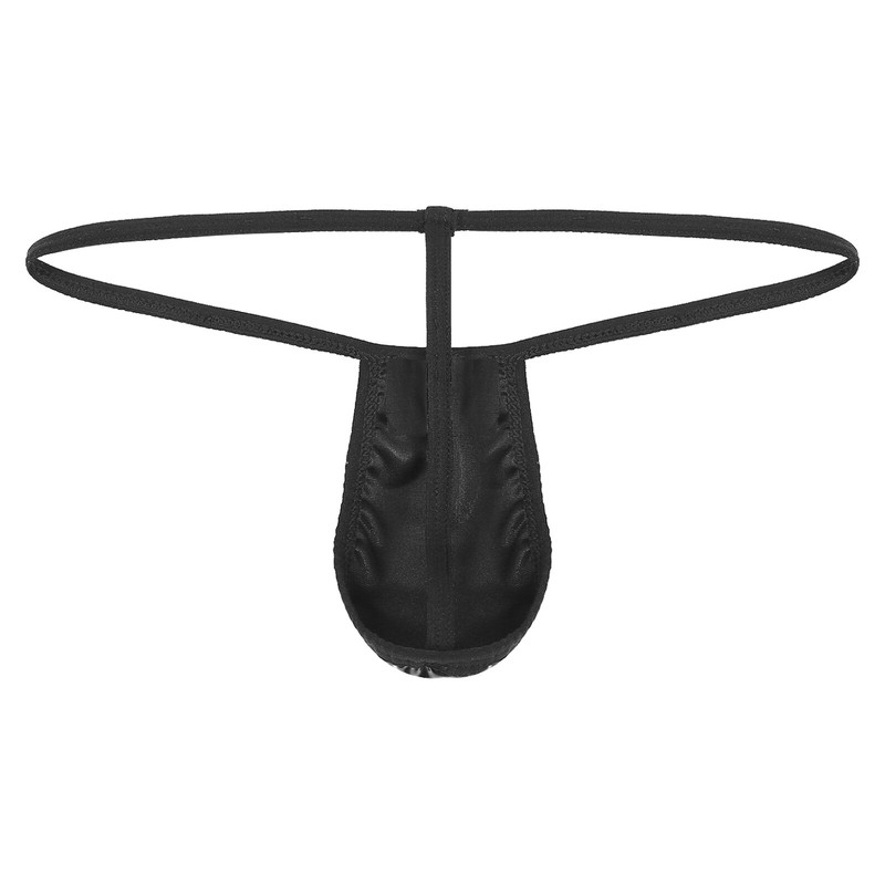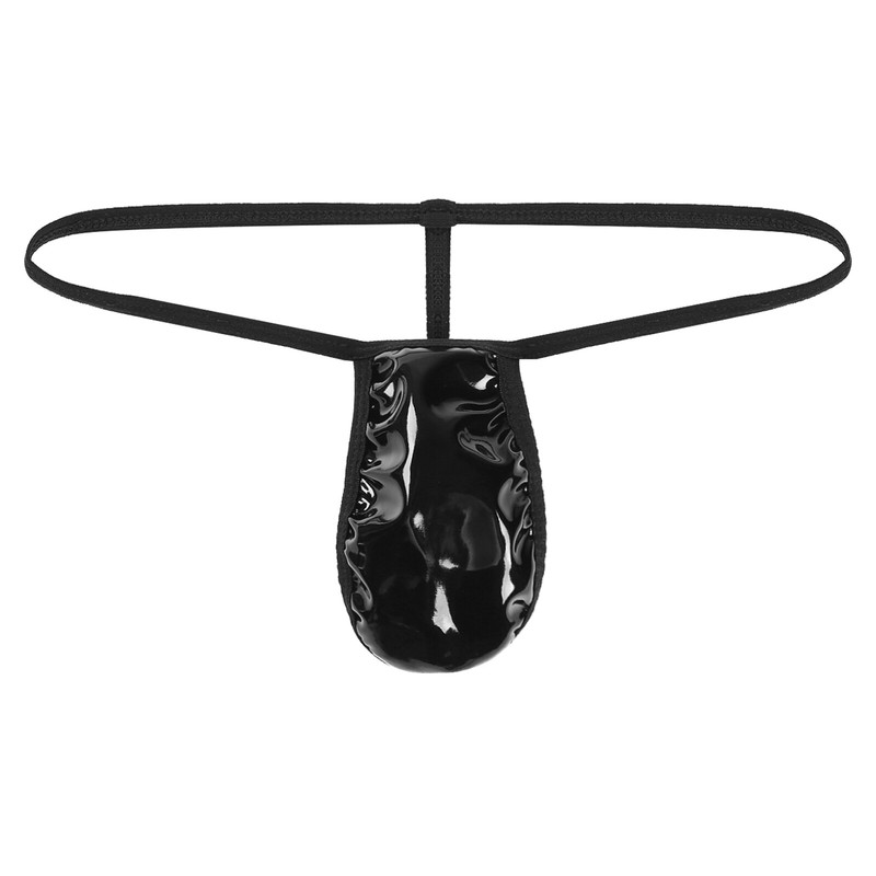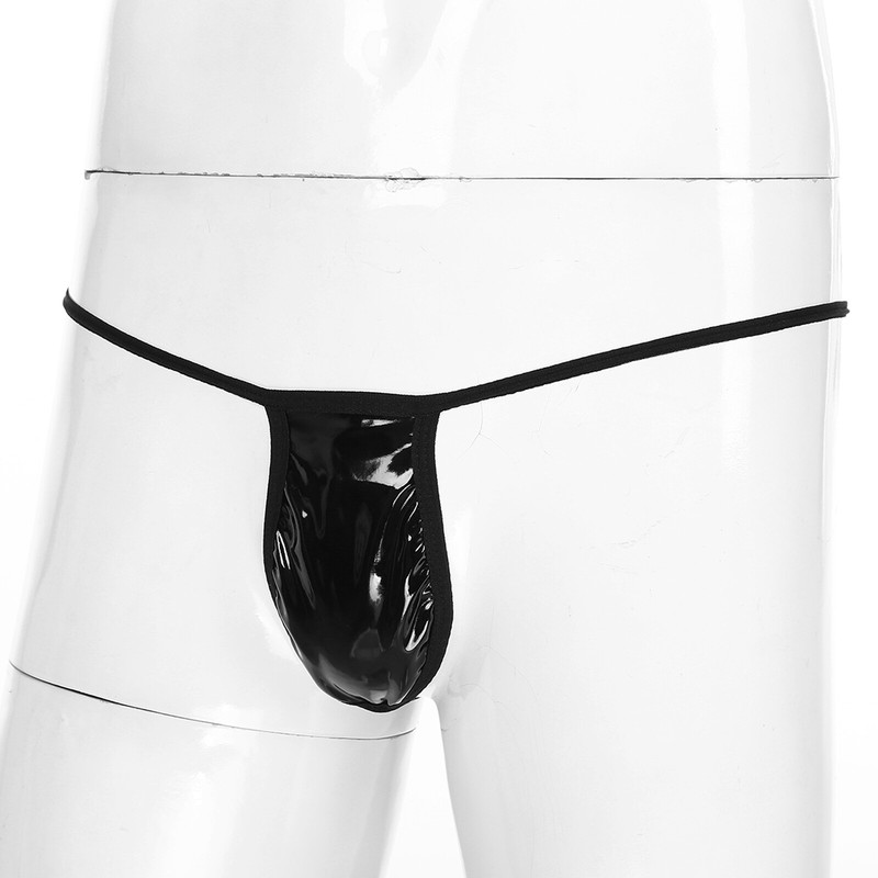 Low rise t-back for men, patent leather bulge pouch, elastic waistband for better fit.