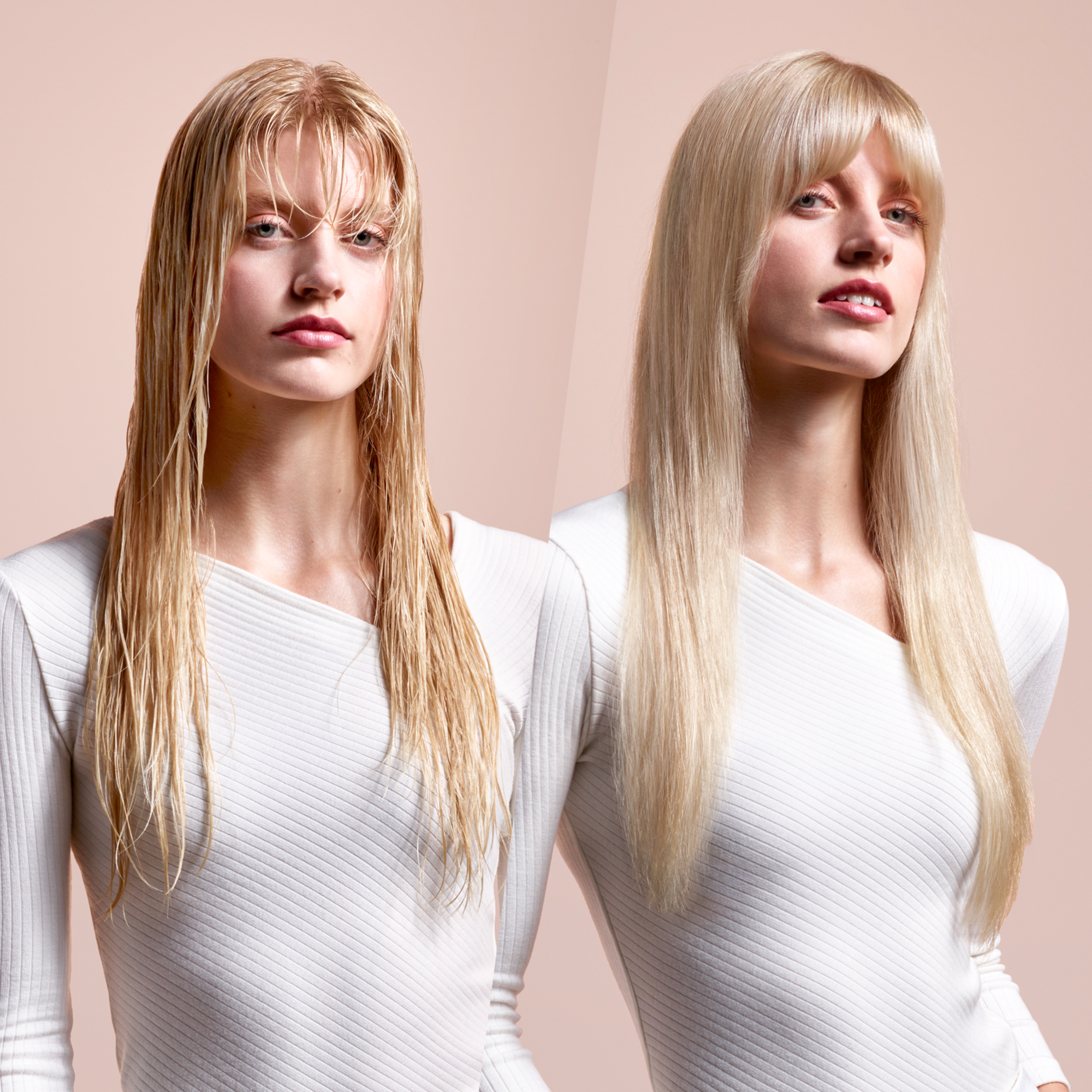 Wet to dry straightening with air. No hot plates. No heat damage.