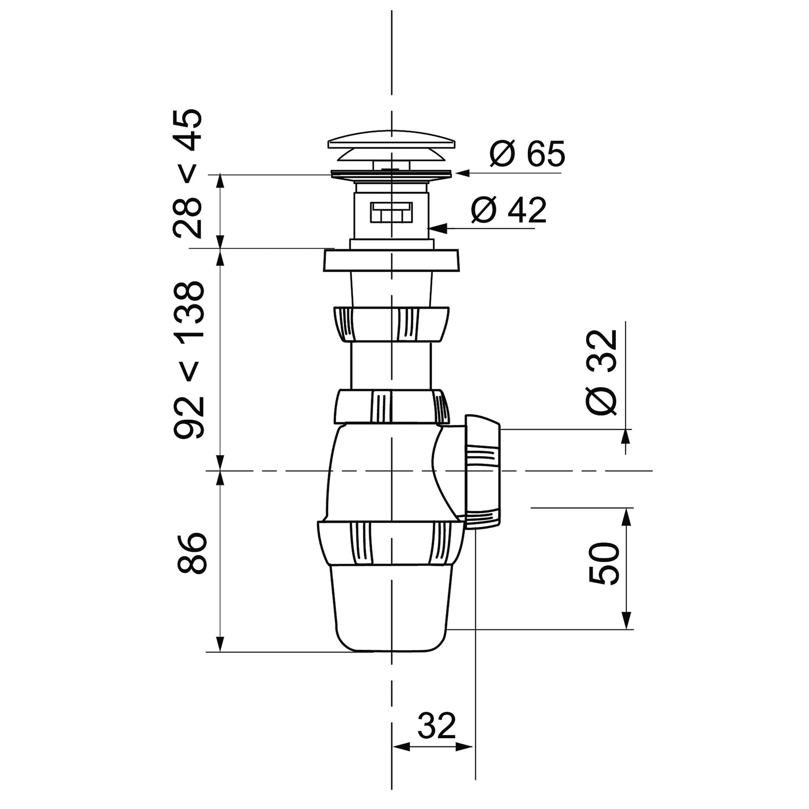 Wirksamkeit gegen steigende Gerueche: 50 mm Wasserspeicher