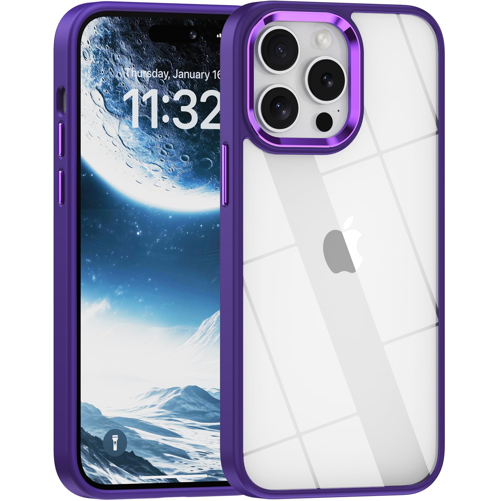 iPhone 15 Pro Case – Clear Hard Back + TPU Frame Shockproof Purple