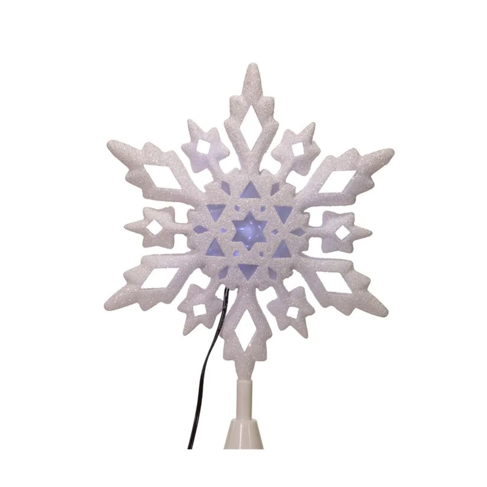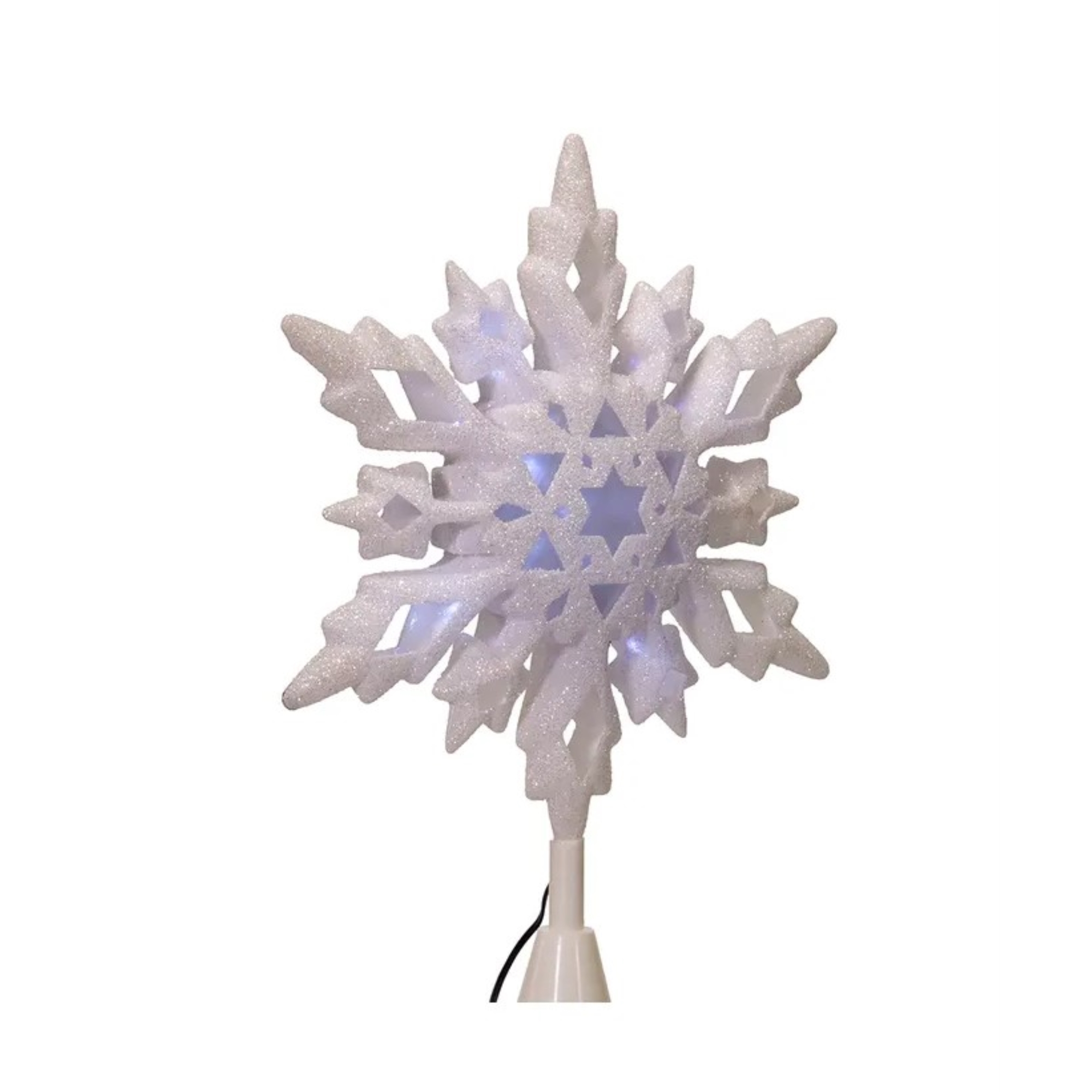 - Elegant Snowflake Design: This 10" cool white LED glitter snowflake treetop from Kurt Adler adds a shimmering, wintry touch to your Christmas tree