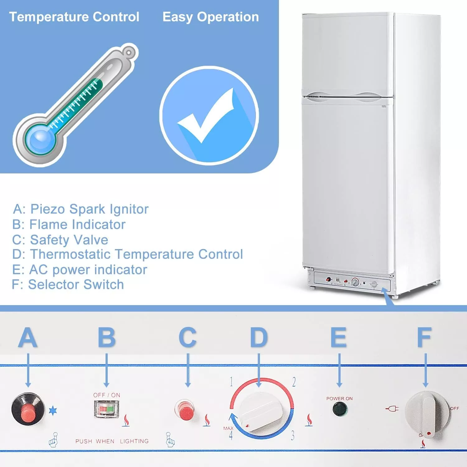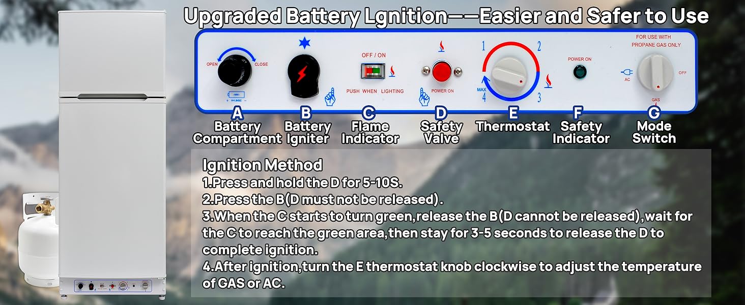 Multi-scene usage- No need to be limited by the power grid, propane fridges are ideal for RV/camper hotel, home, apartment, villa, farms, cottages, chalets, patio, off-grid/solar place.