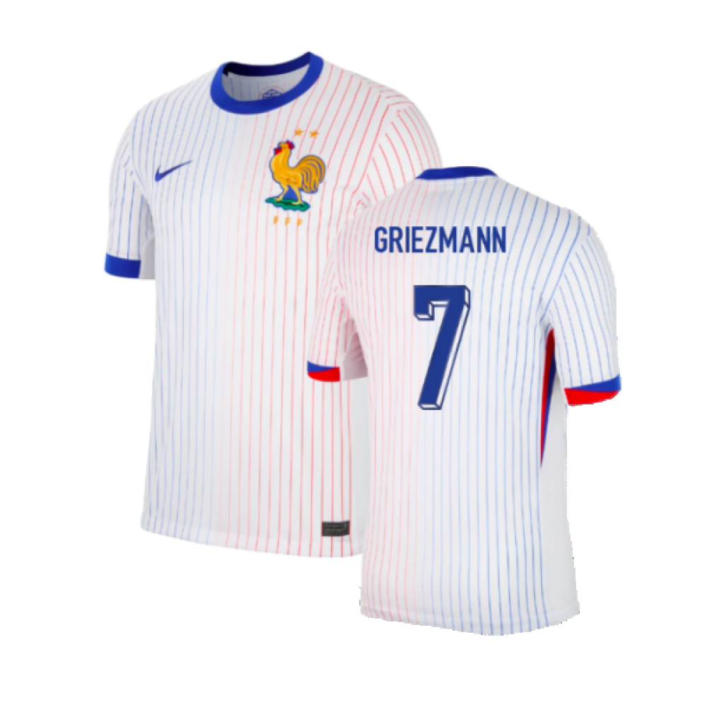 Official Antoine Griezmann football shirt. This is the NEW France Away Shirt for the 2024-2025 season which is manufactured by Nike and is available in all Adult sizes.