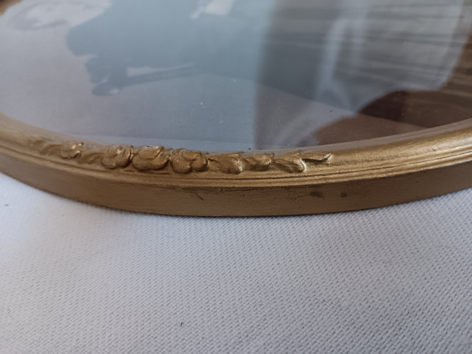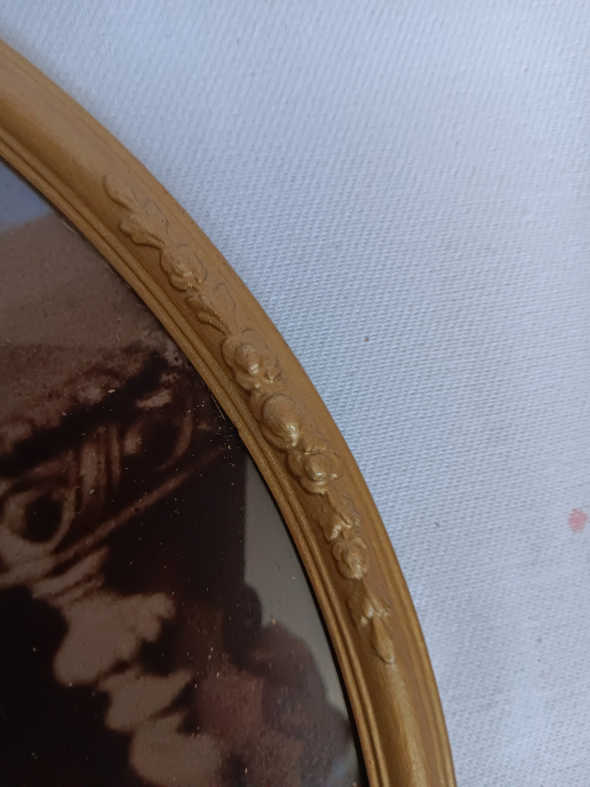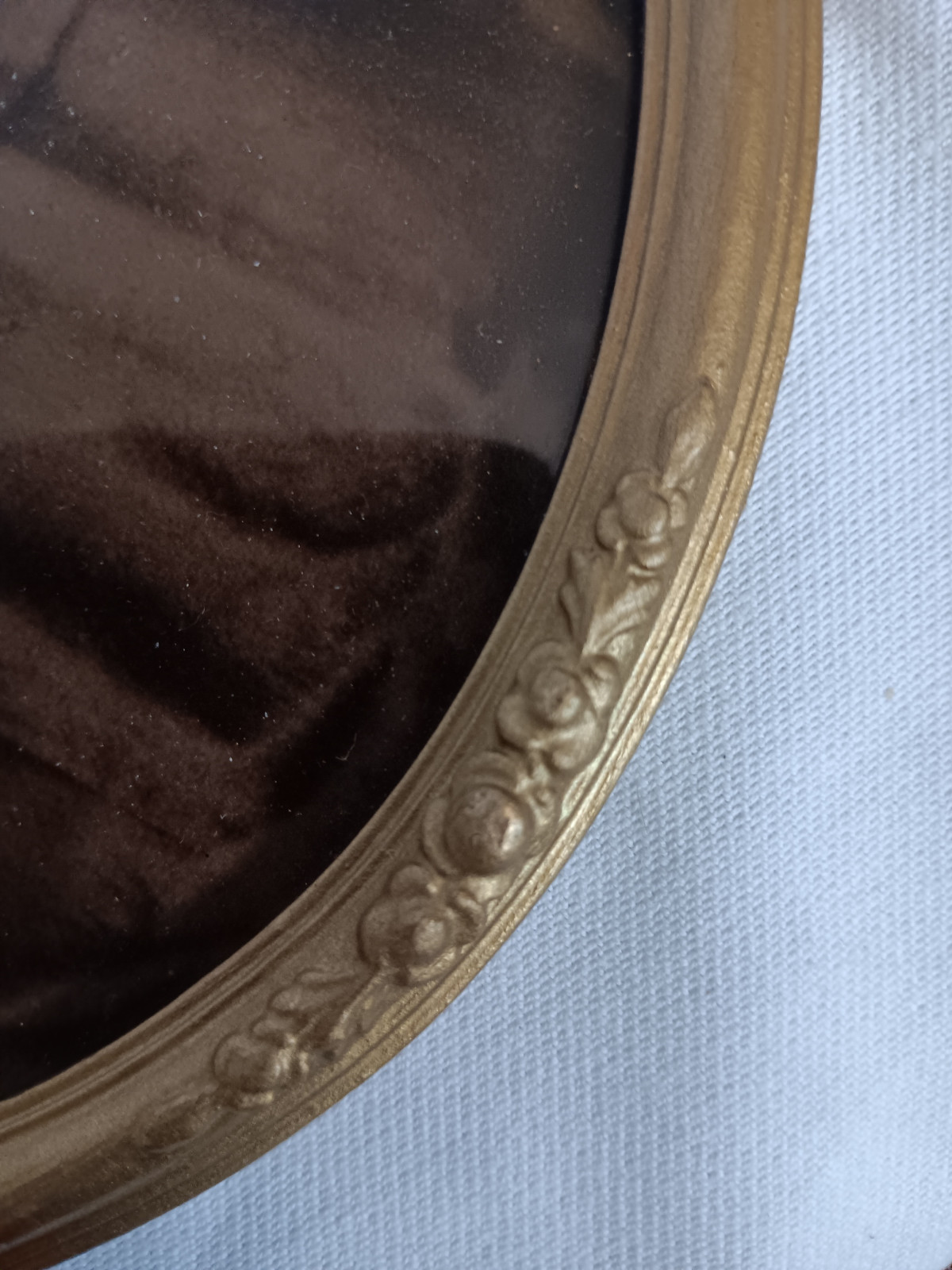 schlichter ovaler Rahmen mit plastischer Blütenzier an allen vier Seiten