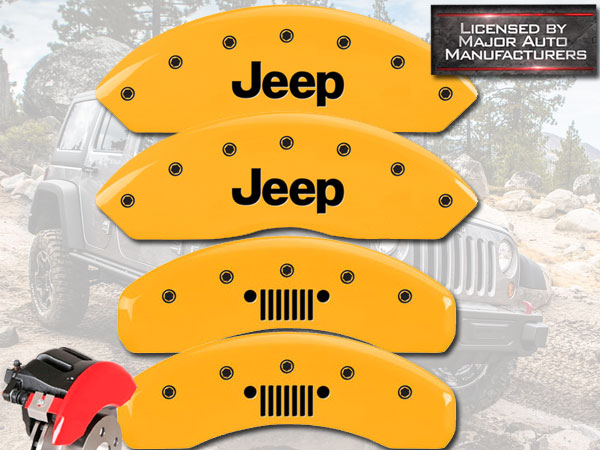 2018-2025 Jeep Wrangler Sport JL Front Rear Yellow MGP Brake Caliper Cover Grill