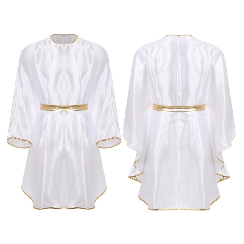 The round neck and batwing sleeves create an elegant and angelic silhouette, giving a sense of fluidity and grace that is both stylish and on-trend.