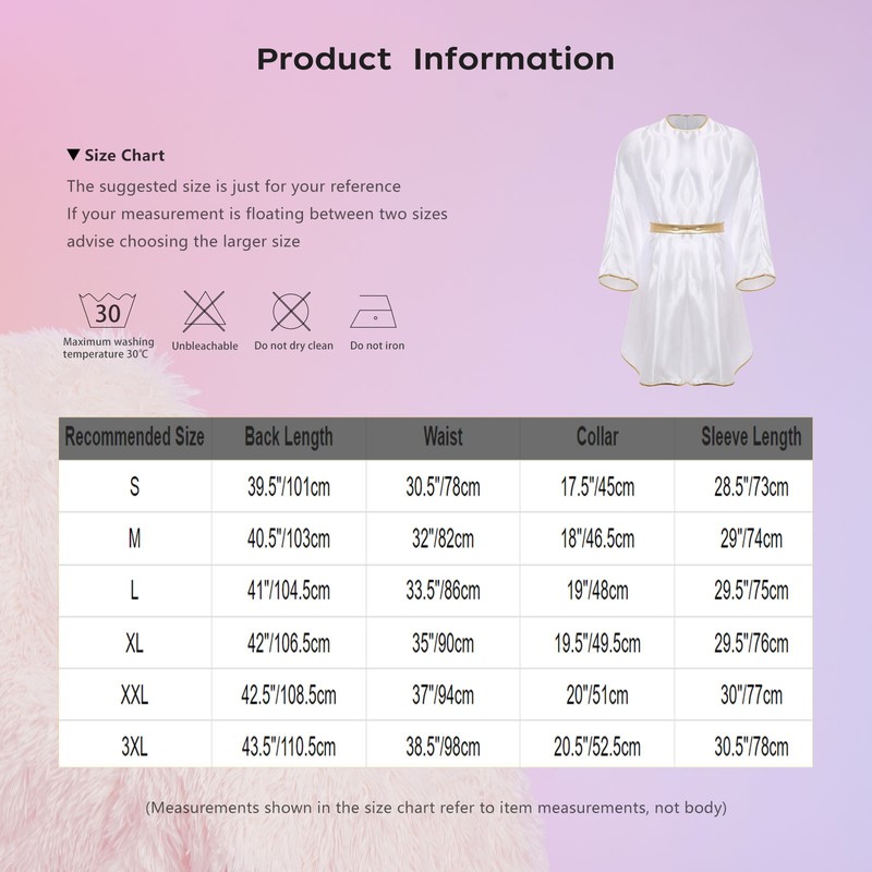 | Tag No. | Recommended Size | Back Length | Waist | Collar | Sleeve Length |