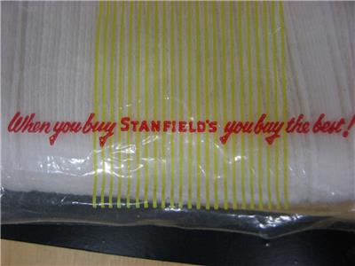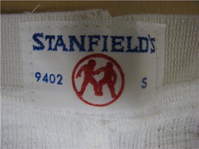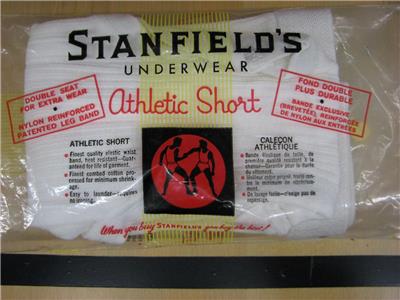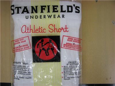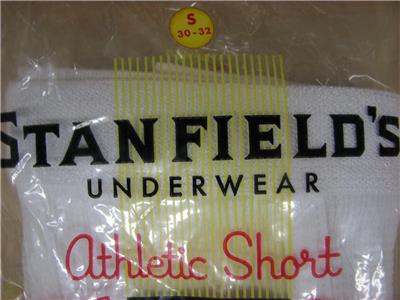 One only STANFIELD'S white athletic short men's brief with double seat panel and classic front fly front. New, never worn, never washed , in original package. Sewn in tag. Size 30-32, in comfortable deep, widely ribbed fabric. Sturdy waistband. No reserve on this very hard to find, collectible brief. Only one I have ever seen, extremely rare!!!!