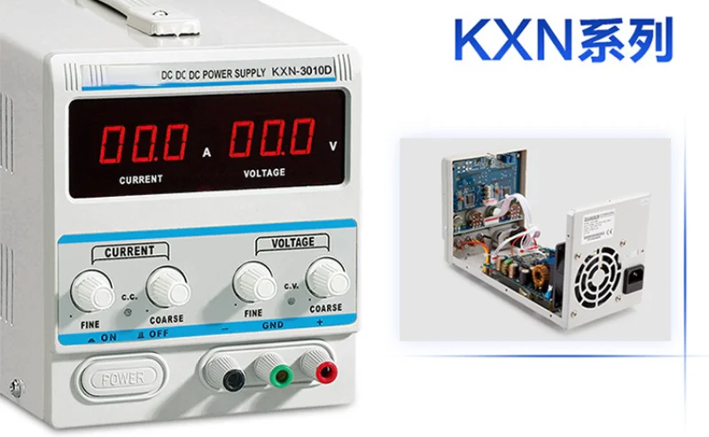 Output 0-30V 0-10A continuous adjustable overcurrent and polarity reverse protection function, KXN series power supply, known as high efficiency constant voltage, constant current type high-frequency switching power supply is characterized by load