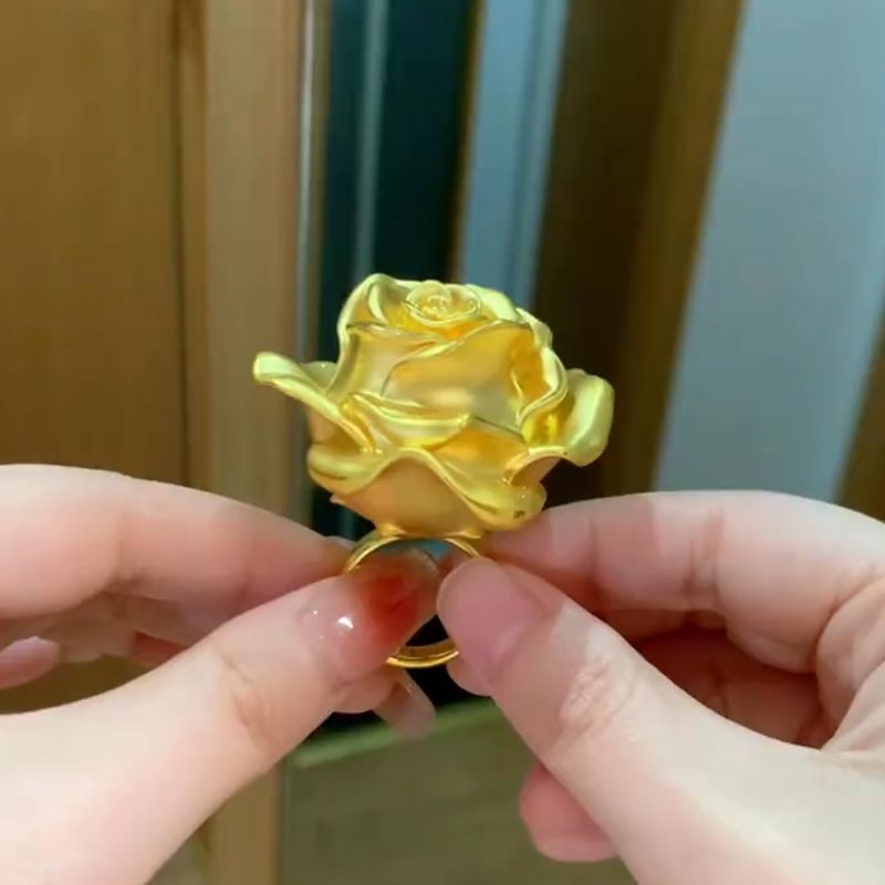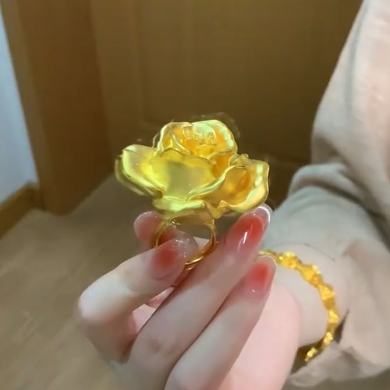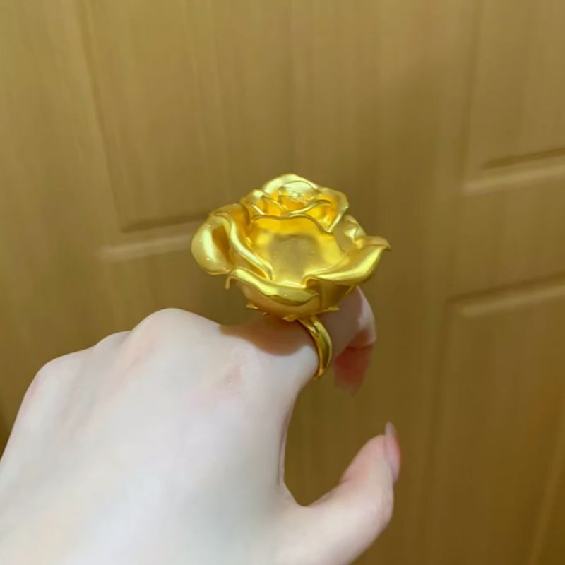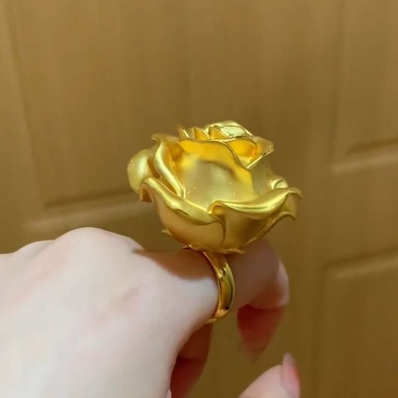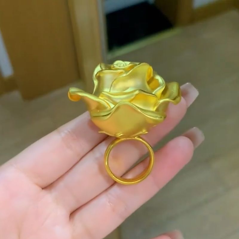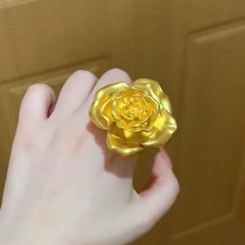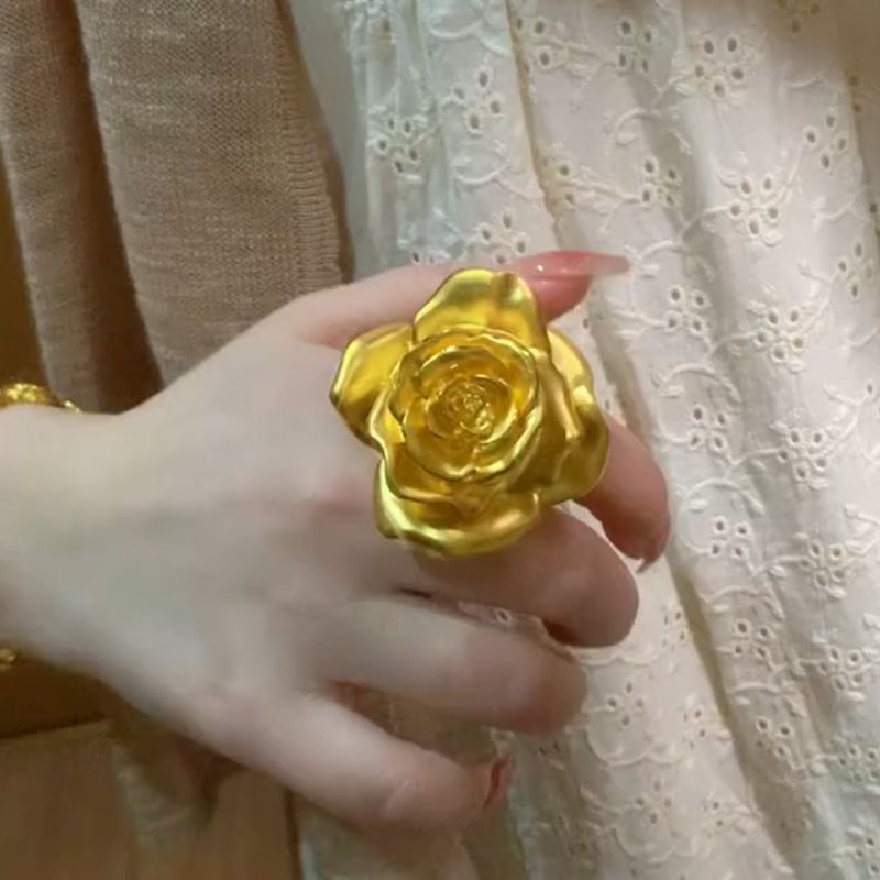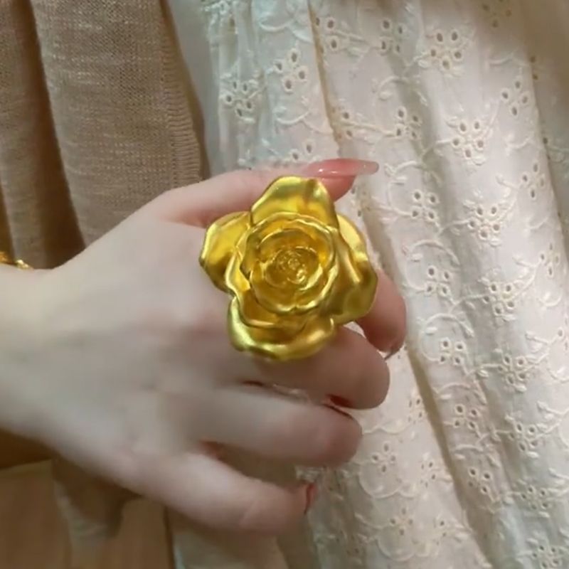 Gold Rose Flower Ring Women Large Blossom Statement Jewelry Fashion Accessory