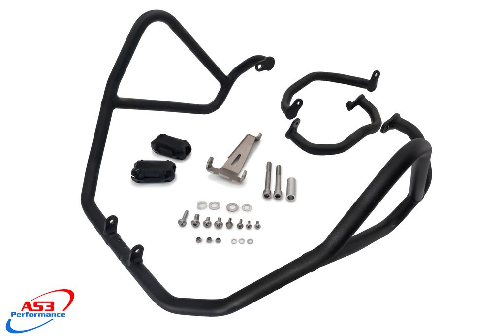 AS3 Performance crash bars are constructed from strong, high quality, 3mm thick aluminium to provide maximum protection to the engine and fairings without adding unnecessary weight. They come complete with all brackets and bolts to mount them to the motorcycle as pictured and fitting instructions are also provided. AS3 Performance crash bars come in a textured matt black finish to match our range of aluminium skid plates.