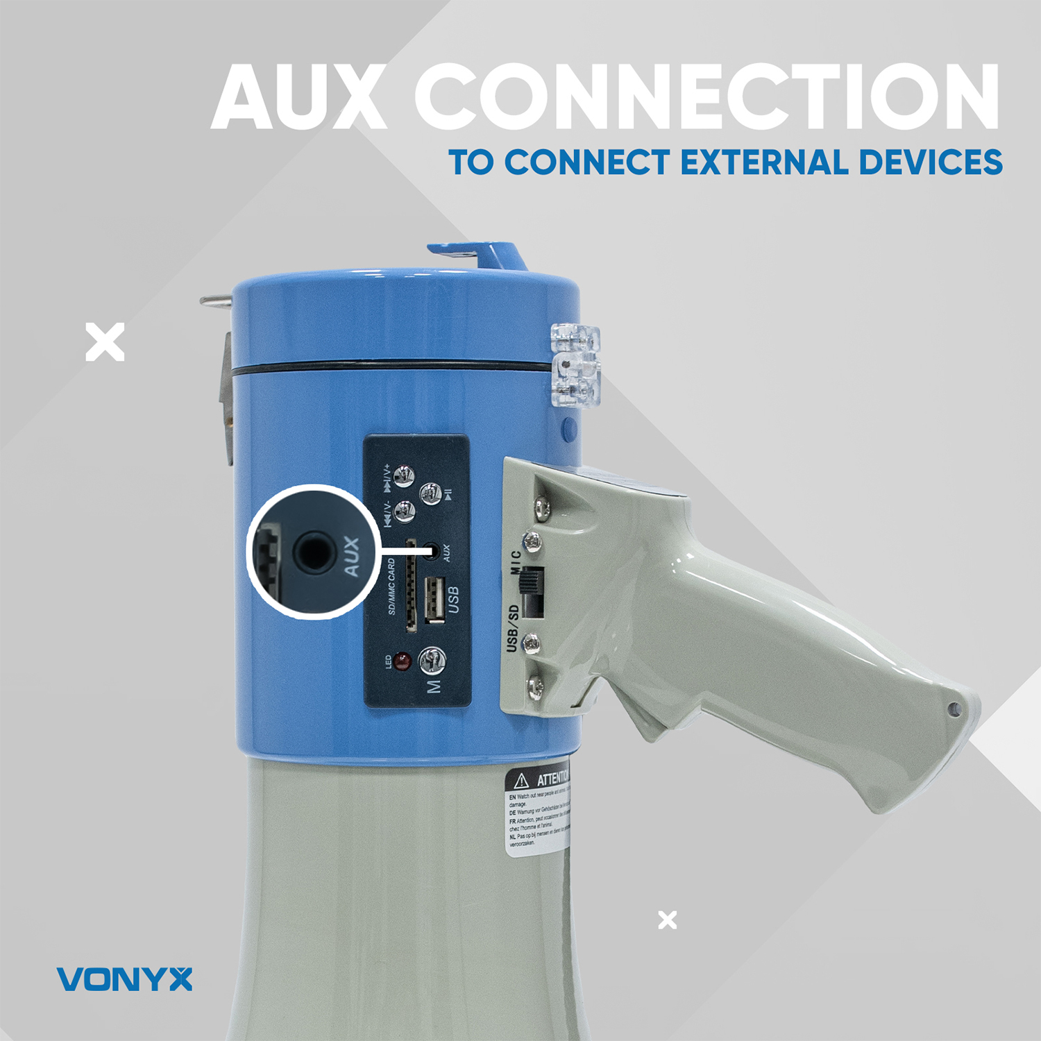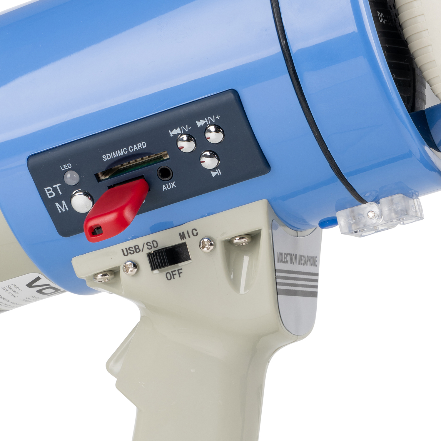 Built with your needs in mind, this package is brought to you by Electromarket. Package Includes 1x Vexus 952.014 Megaphone with Music Playback 60W LLA0582 - Vexus MEG060 Compact Light PA Music Siren USB/SD/Aux MP3 Player Megaphone 60W Powerful megaphone with built-in 60W amplifier with detachable anti howl microphone on coiled lead. Features USB and SD slots, a siren function, volume control and adjustable shoulder strap. Distance 1.0 - 1.2km depending on the operating conditions. Features