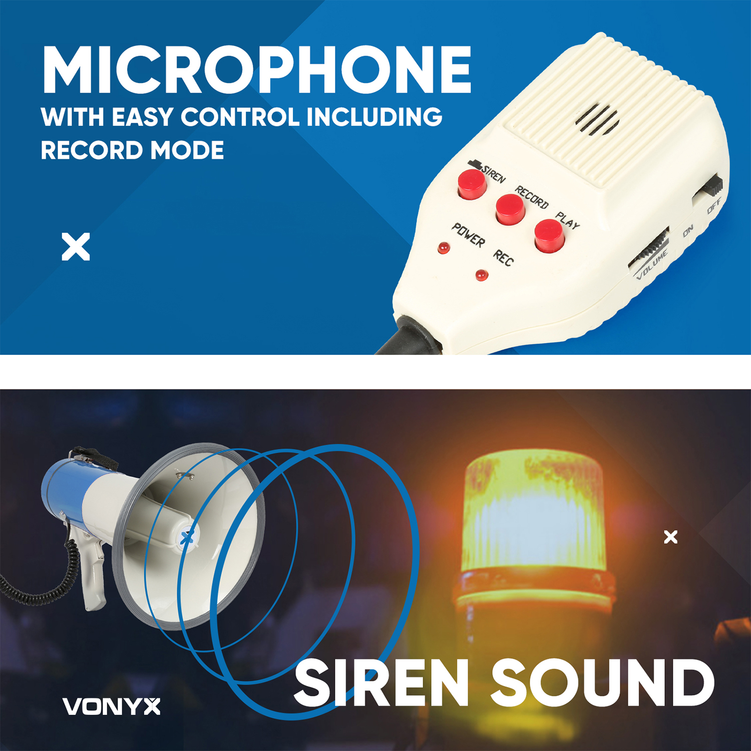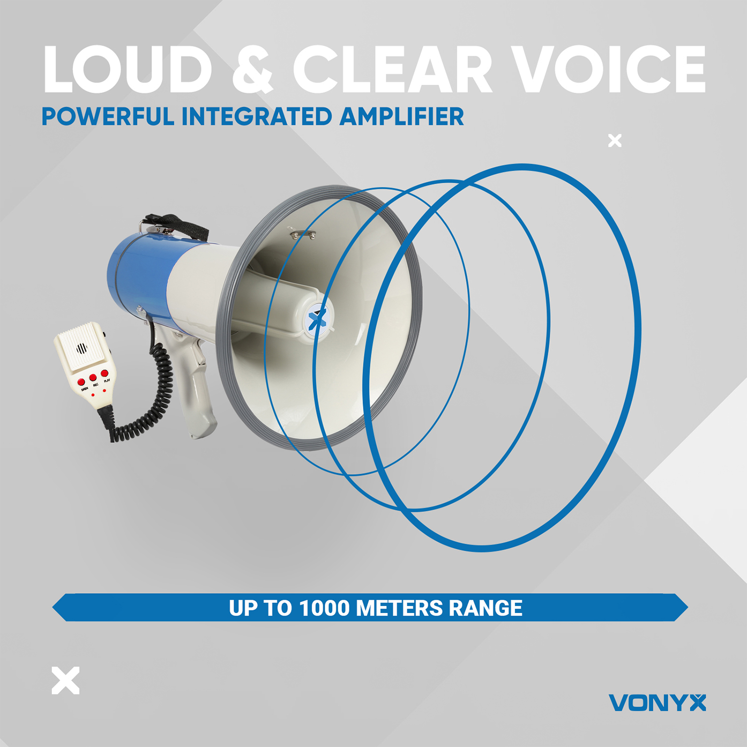 Vonyx MEG060 60W Megaphone Loudhailer with Microphone - 1000m Range