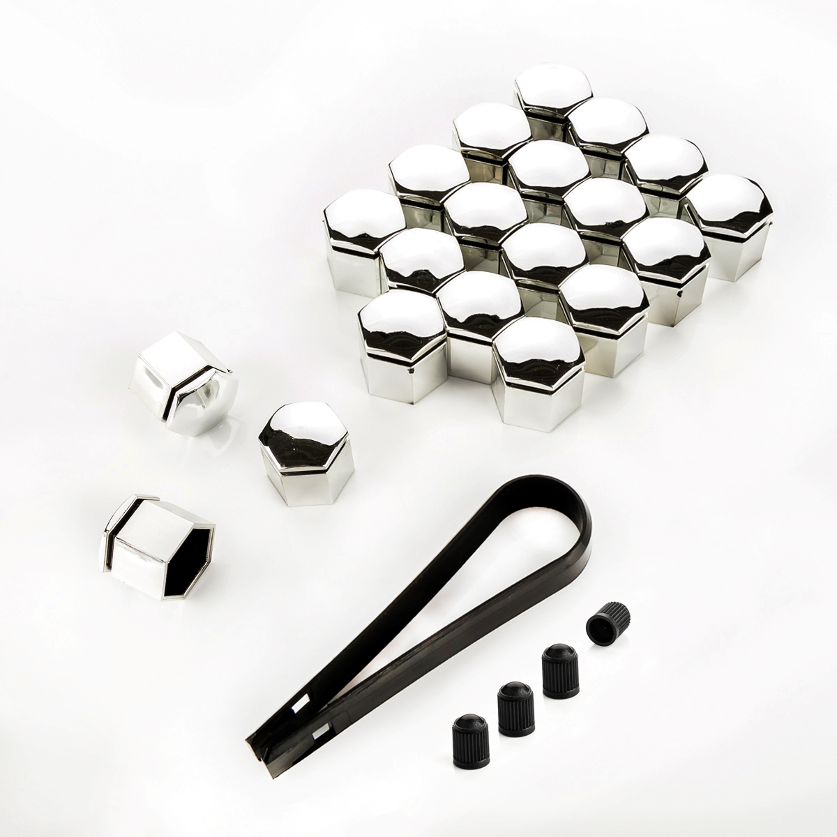 • 1x set (20x tappi di copertura incl. Strumento di smontaggio + 4 cappucci per valvole)