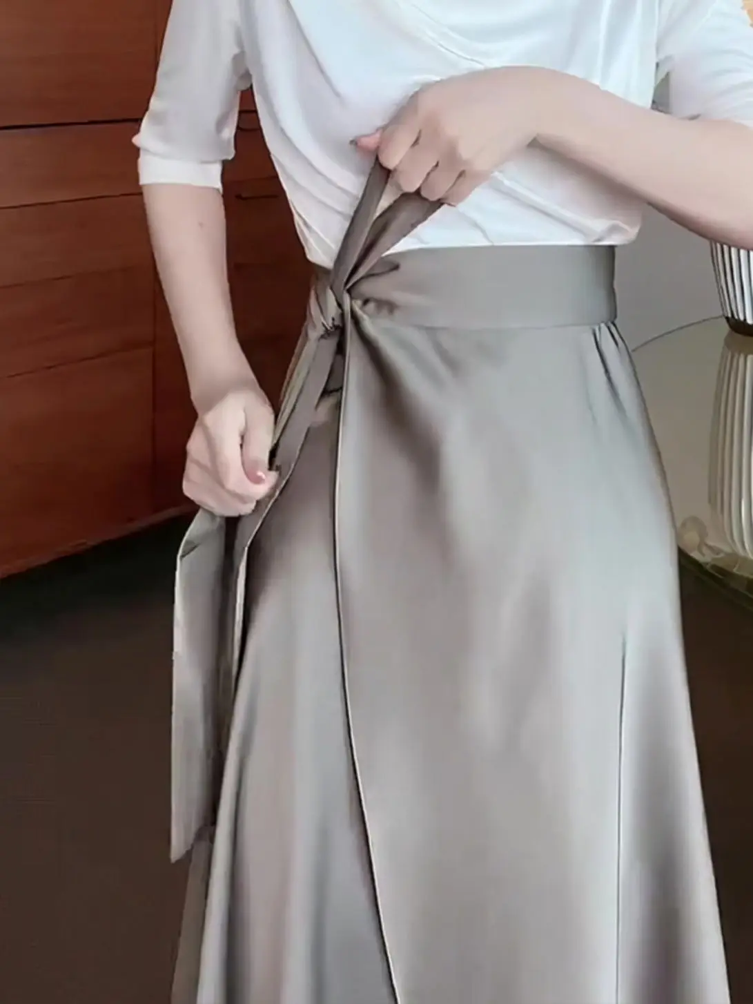 Summer New Stylish Elegant Commuter Solid Color Skirt Slim Fit One piece Lace up