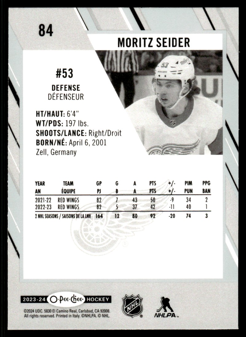 | 2023-24 O-Pee-Chee Moritz Seider Detroit Red Wings #84 20190 |