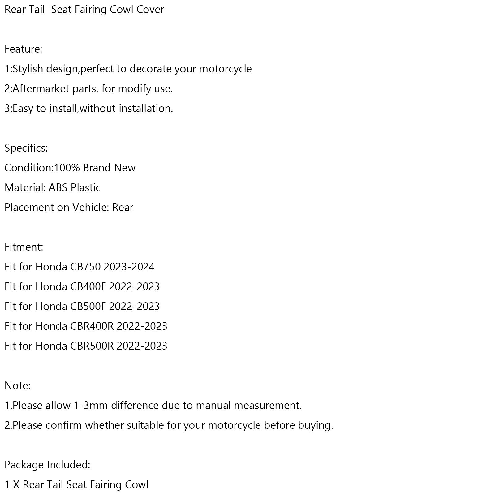 2:All returned items MUST BE in the original packaging.