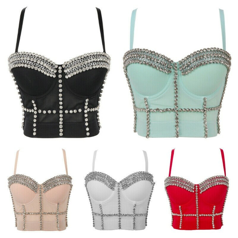 Lady Ripped Denim Tank Bustier Bra Bralette Corset Vest Crop Tops Punk Club Sexy
