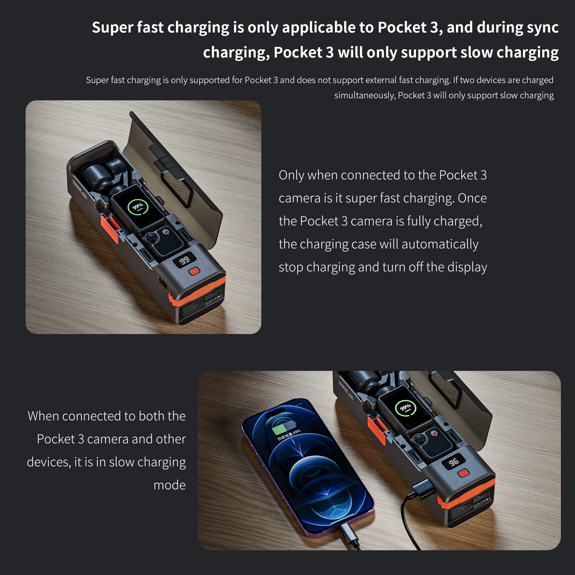 1. Specifically designed for the DJI Osmo Pocket 3, this pocket camera charging case combines charging functionality with storage and protection. Precisely moulded for the DJI Osmo Pocket 3, it provides stable power supply and secure storage.