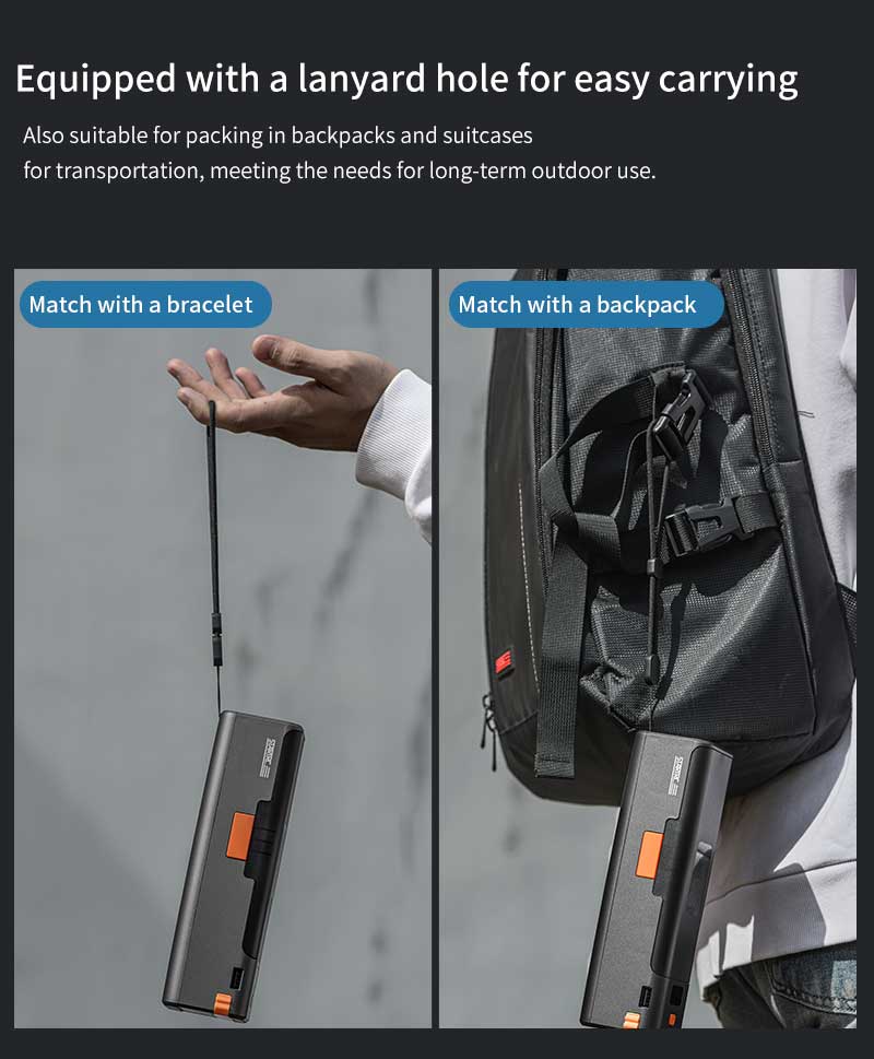 5. The charging case comes with a wrist strap, is compact in size, and is easy to carry. It is suitable for carrying by hand during leisure outings and can also be placed in a bag or suitcase for transportation, meeting the needs of long-term outdoor use.