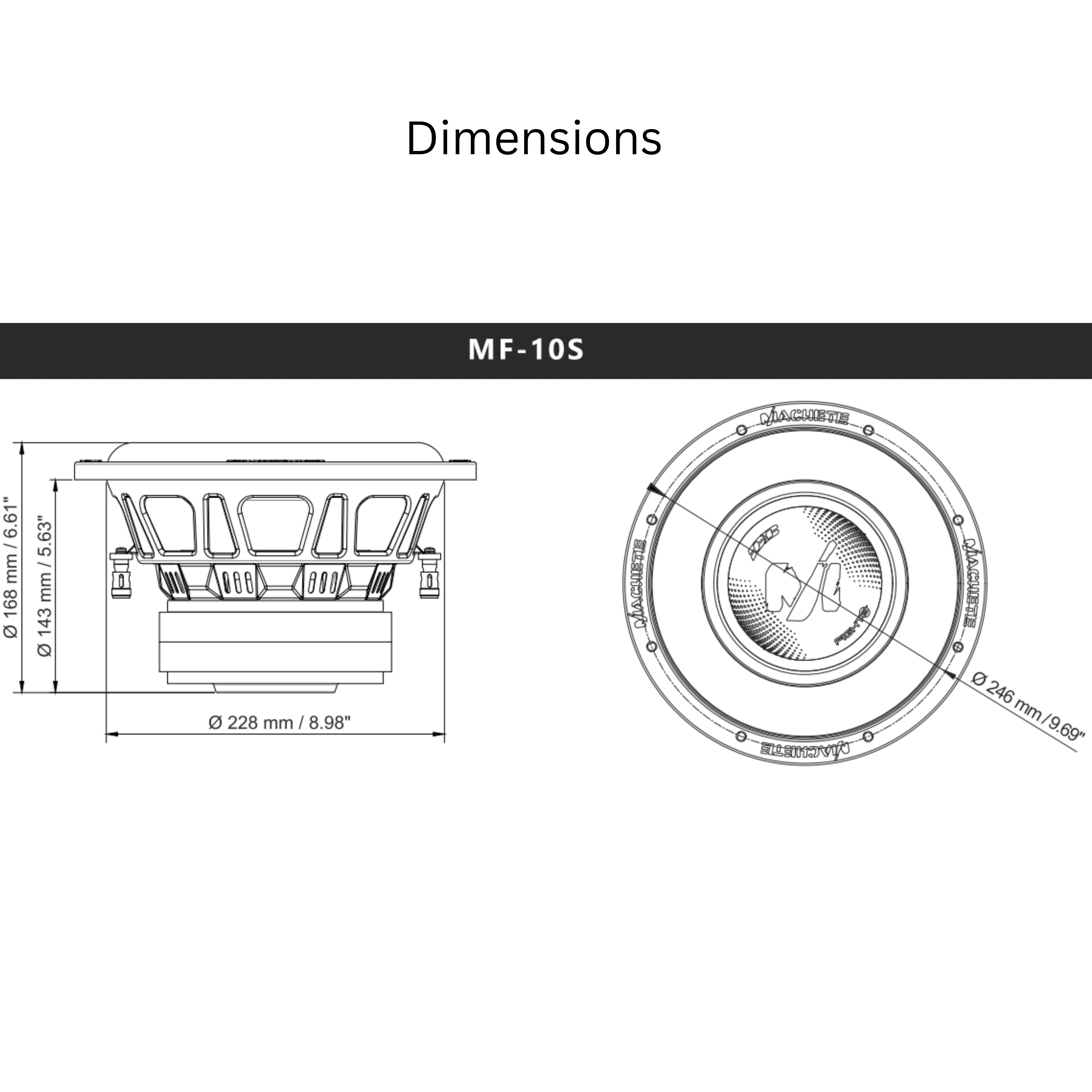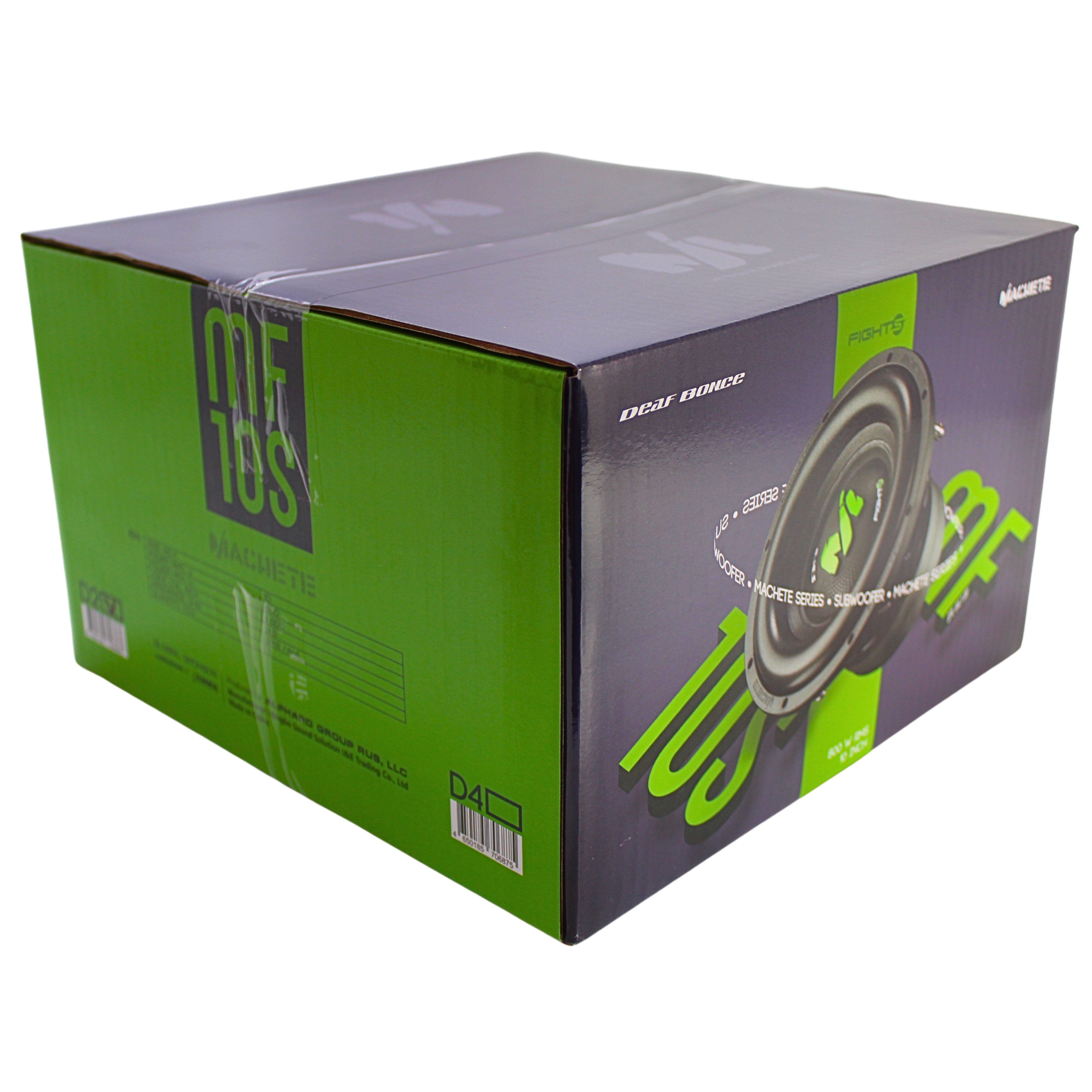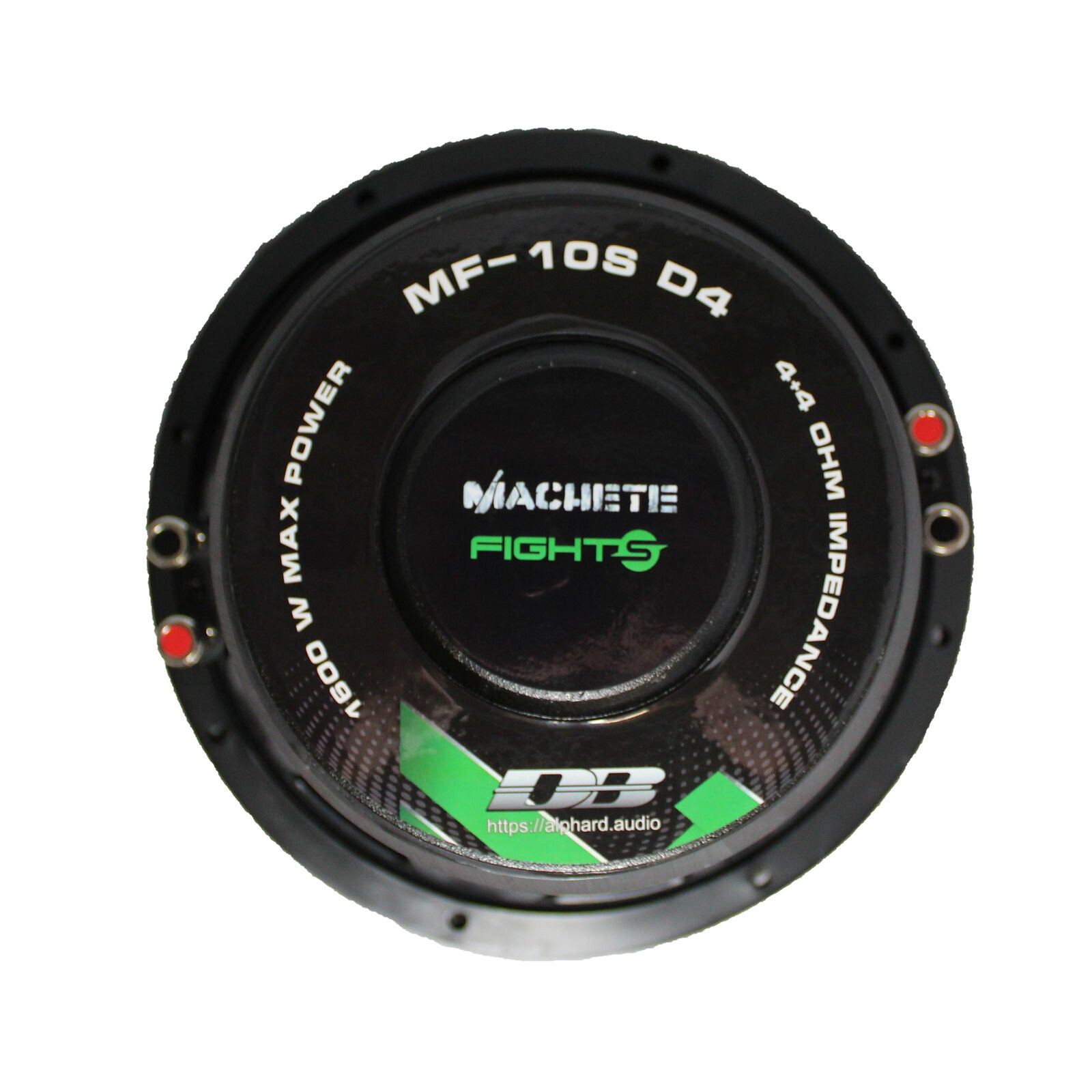 Unleash the power of sound with the Machete MF-10S D4 1600W MAX Subwoofer from Deaf Bonce. This 10'' subwoofer packs a punch, delivering an impressive 1600w peak power. Featuring a sturdy steel frame and a versatile 4+4 Ohm dual voice coil, it gives you the flexibility to tailor your audio experience. Whether you crave heart-pounding bass or nuanced lows, this subwoofer is the perfect companion for all your audio needs.